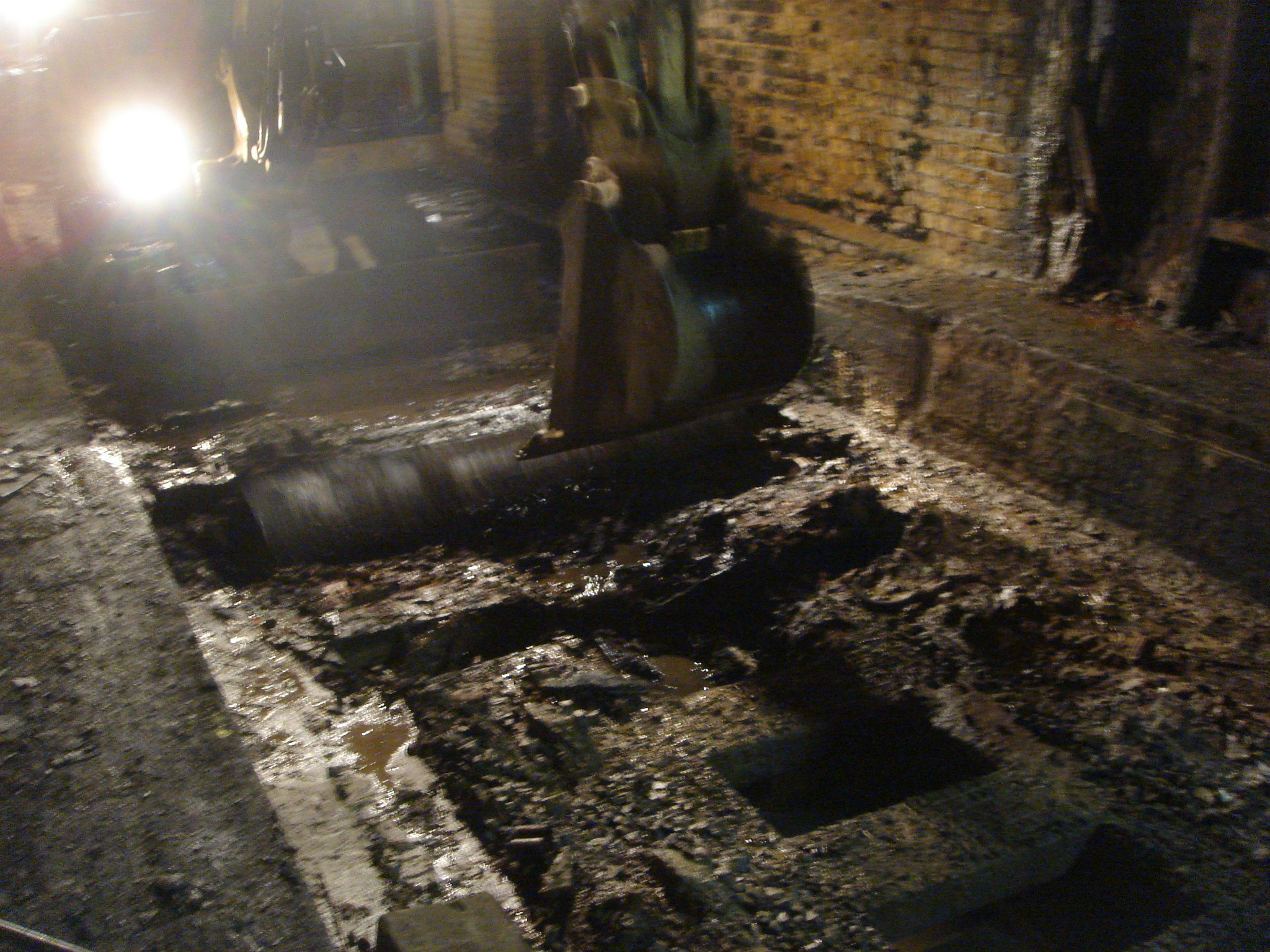 So what next? Continue with the re-profiling, (the risk of any adverse effects sit with the Client – am I becoming a contractor?!) and deal with the water in preparation for Drilling & Grouting. Generators and ‘Rent a Vent’ (yes it is actually called that) can substitute the installation of mains power and ventilation, but a fully functioning sump and water diversion system is critical.