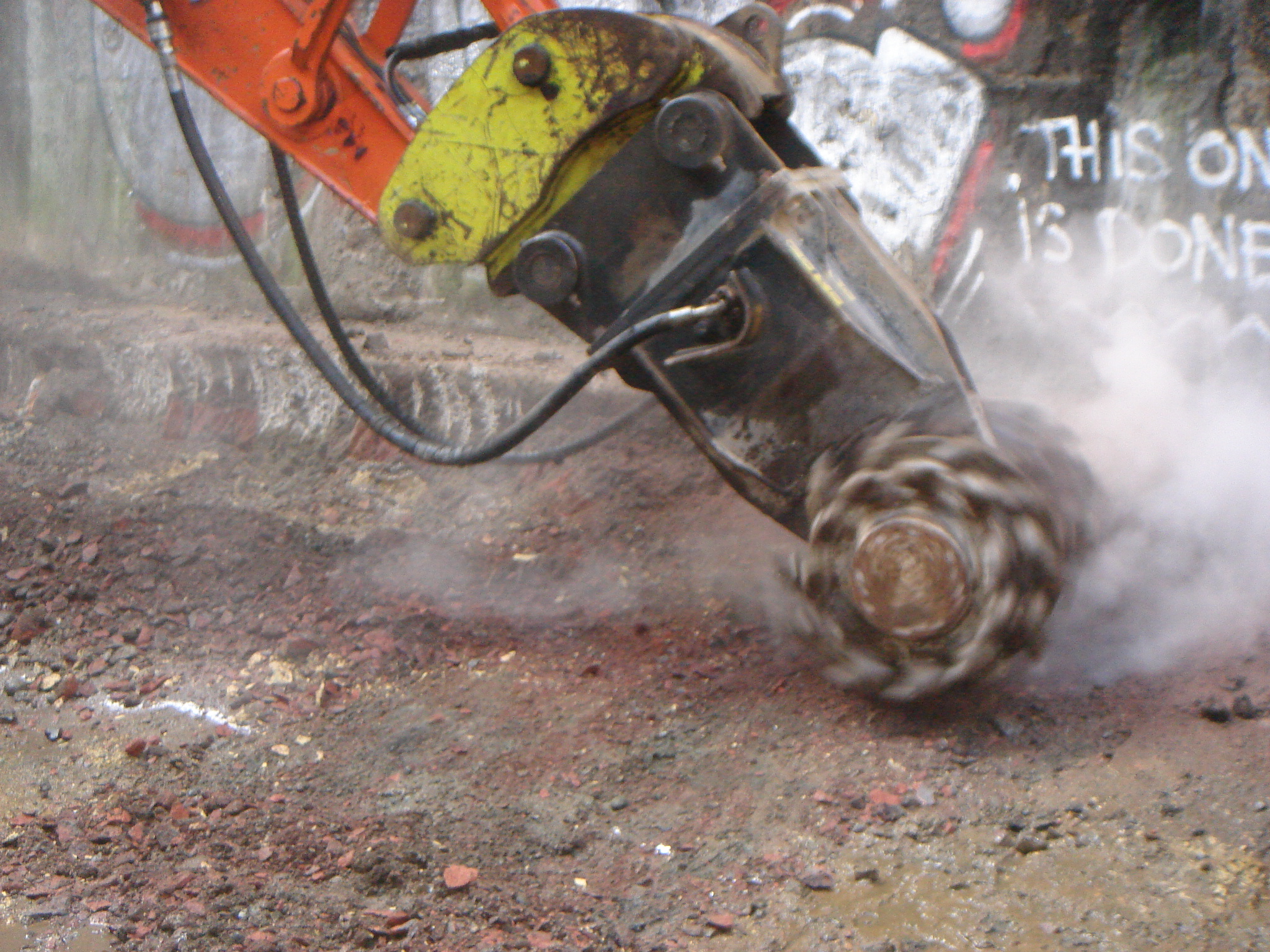 As the Approach Ramps & Tunnels Section Engineer I am responsible for planning, coordinating and enabling all of the works, and in the case of the re-profiling carrying it out. Two trials took place to establish the most effective, accurate and safe equipment and methodology. A Rock Wheel attachment to a 21t excavator was selected, and manual setting out and checking is currently deemed as the most suitable means to ensure levels are within the Designer’s stipulated tolerances. The works have started and are progressing well, although the setting out and monitoring is time consuming for my Site Engineer, as is the checking for me. We are looking into alternative monitoring systems – thought I may look up Margaret Beach in the Survey department to seek some advice (I know she was keen for a field trip for the survey students!).