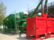 Grout silos and agitator tank on central compound from where grout lines are run down ventilation shaft into the tunnel.