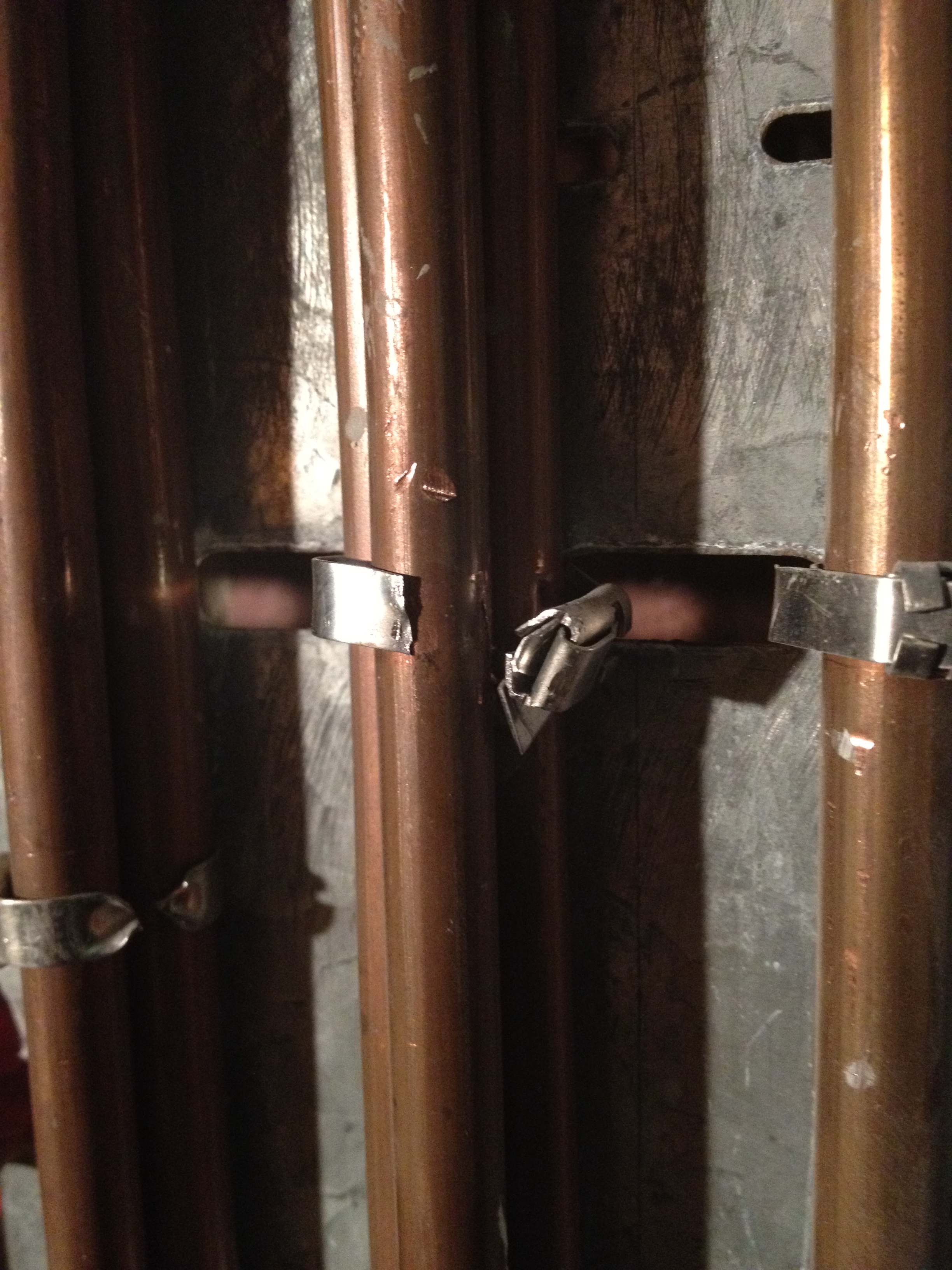 The client’s representative, normally a mild managed man who just wants to be left alone, see things differently, however. He contends that either, the cable has been hit, or that excessive vibration has caused the cable, which he insists was not damaged during the original installation, to be cut by the steel strap. In either even, he insists, the fault, and so the cost, lies with us, the builder, and so he does not want to pay us for the repair work (~Aus$15,000).