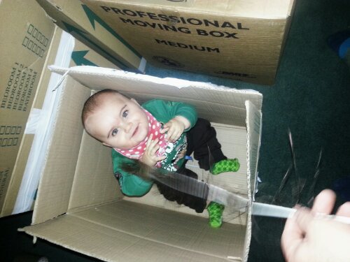 Corine and Hugo survived the move and are settling in well. The boxes are mostly unpacked and I have plenty of new furniture to un-flat-pack. Deep joy (love it really). Hugo was most entertained during the unpacking process and it just goes to show that you don’t always need expensive toys!
