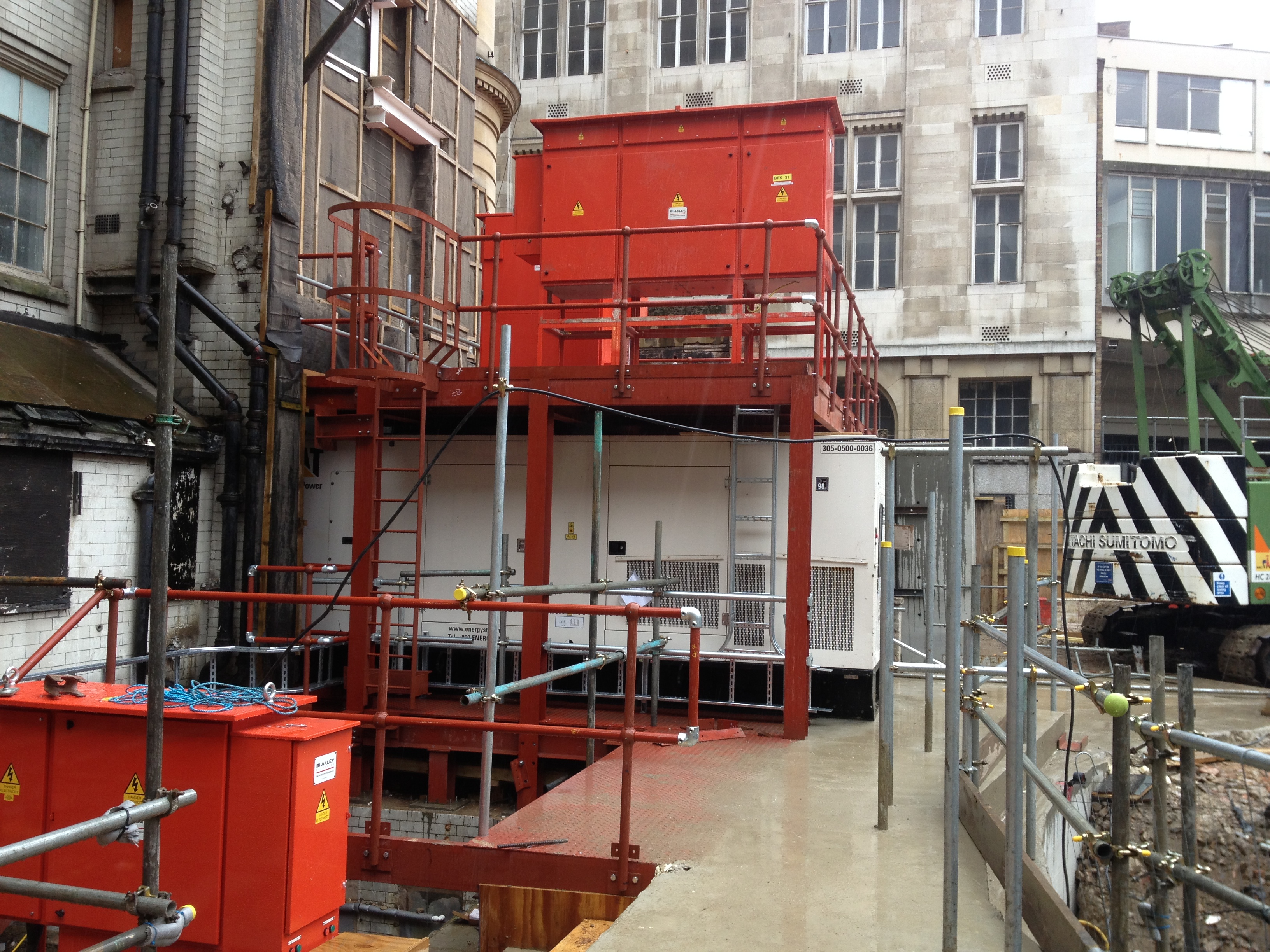 Since getting the steel platform in this week other components have begun to arrive and get put in place. As you can see, the generator, receiver, compressor, MDU and finally the Siltbuster HD unit (which will neutralise the PH level of the water before discharge) have all been put in place. The water treatment system will be in place by the end of next week, consisting of a concrete washout, settlement tank and the Sitltbuster HD unit. Fingers crossed that this system will work, as other sites around London have had some serious issues with the water treatment systems they have in place.