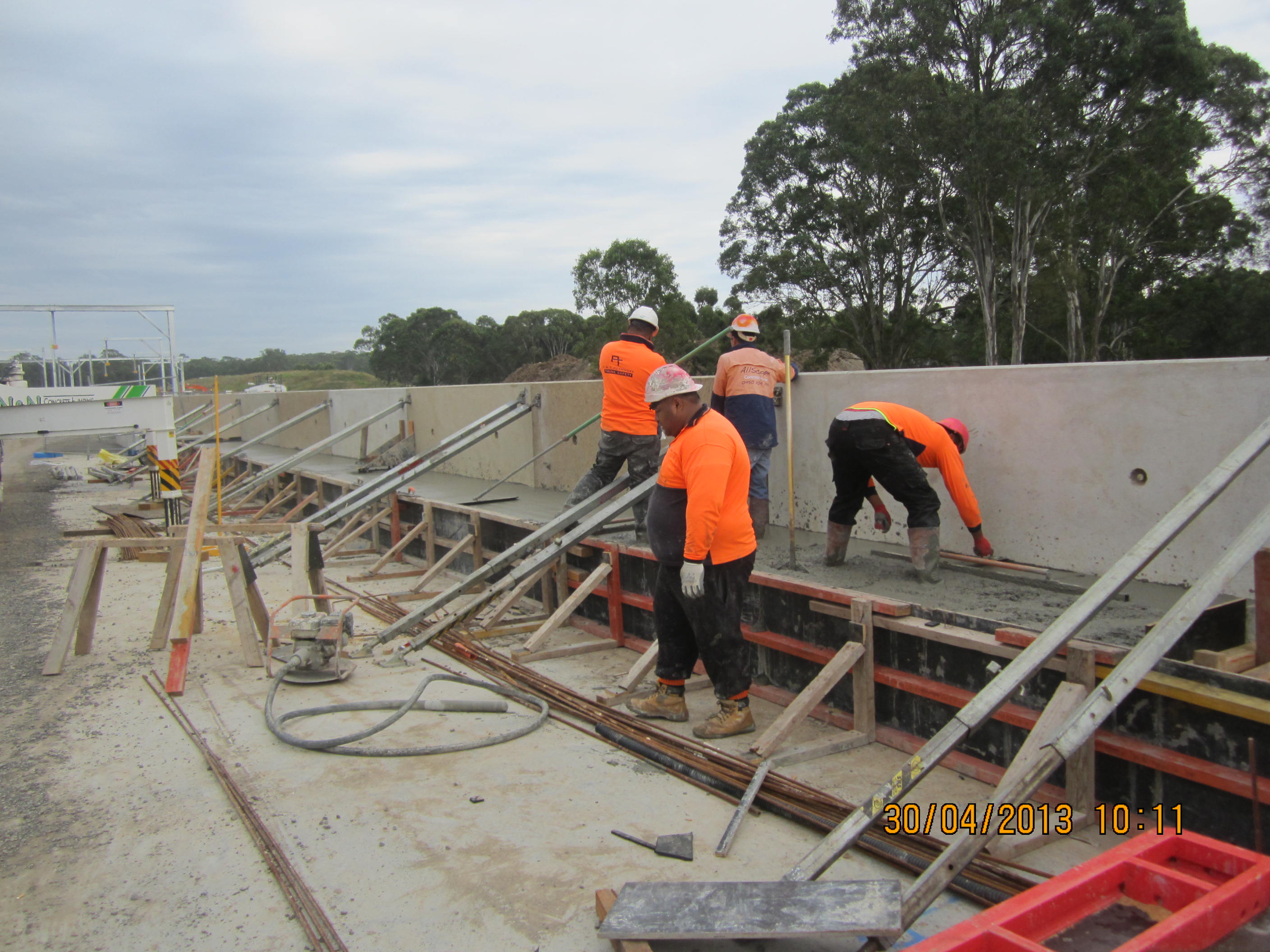 Kemp Creek bridge is slowly edging towards completion although we will be cutting it fine. We were originally told that by 15 May the bridge needs to be complete as track will be laid, this has now moved to thr right by 7 days giving us some breathing space. I conducted an 86m^3 pour on tue of the CSR walkways which house the services but also tie in the pre-cast parapit sections. I seem to be getting a reputation with the concreters for being able to order the exact amount everytime we pour which I find rather to close for comfort if I’m honest. On this pour I had 13 ‘agi’ trucks and with 3 to go got my calculator out to work out what I needed to add for the message. Having ordered 80+ I activated an extra 6m^3 and all we had left was about 0.5m^3 which was left in the boom pump. I repeated this with Pile Cap A at Dickson Rd but it was a little more stressful but after we blew out the pump and emptied the hopper it was exact – I may just order a little more on the next pours to give me some wiggle room!