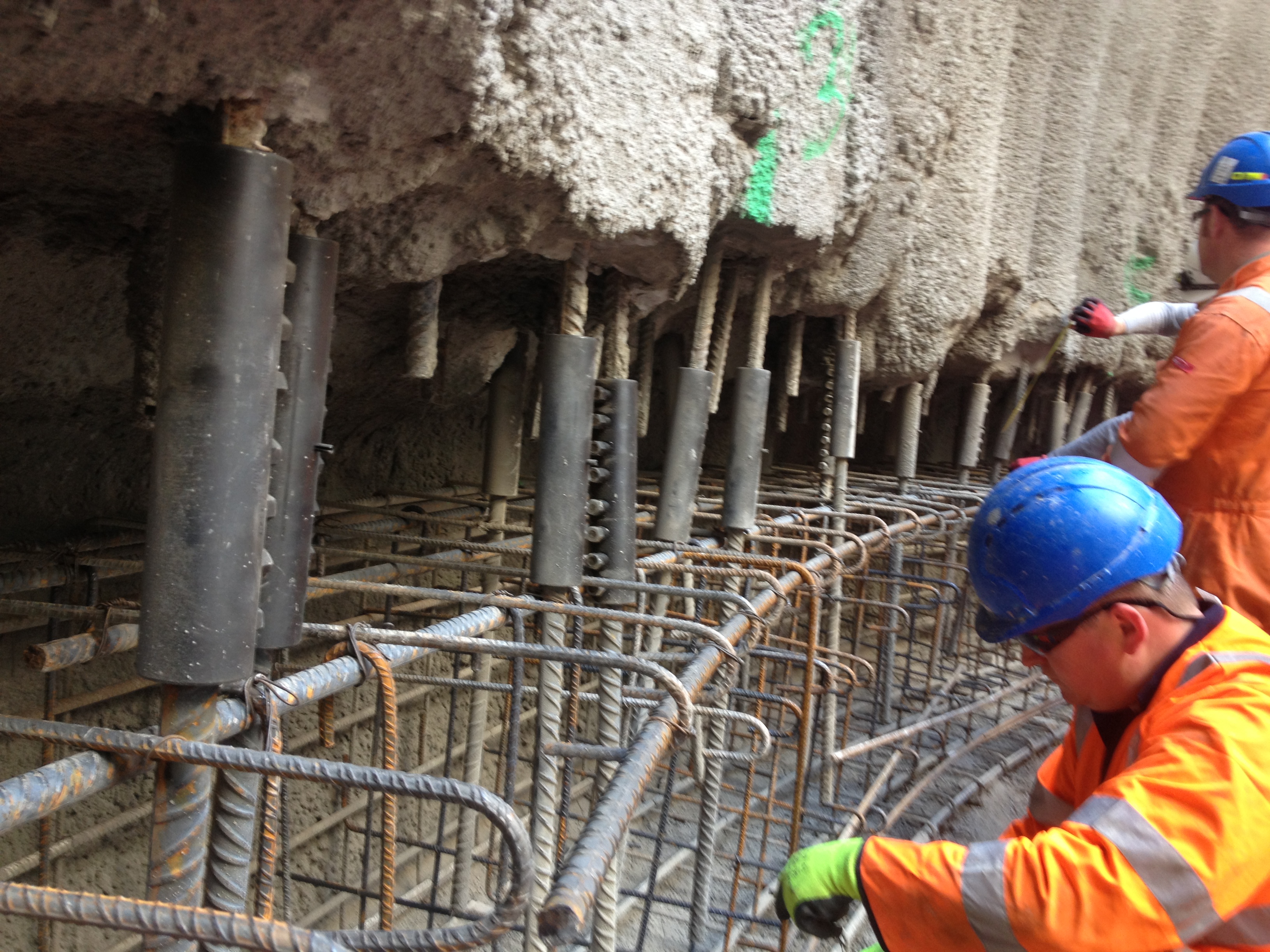 Once the reinforcement requirements for the Ring Beam were calculated, the decision to cut the reinforcement could be made. However although the calculations demonstrated that all the reinforcement was not necessary, the decision was still made that all the reinforcement bars had to be coupled back together, once the SCL had been completed. I am in the process of trying to find out why this decision was made.