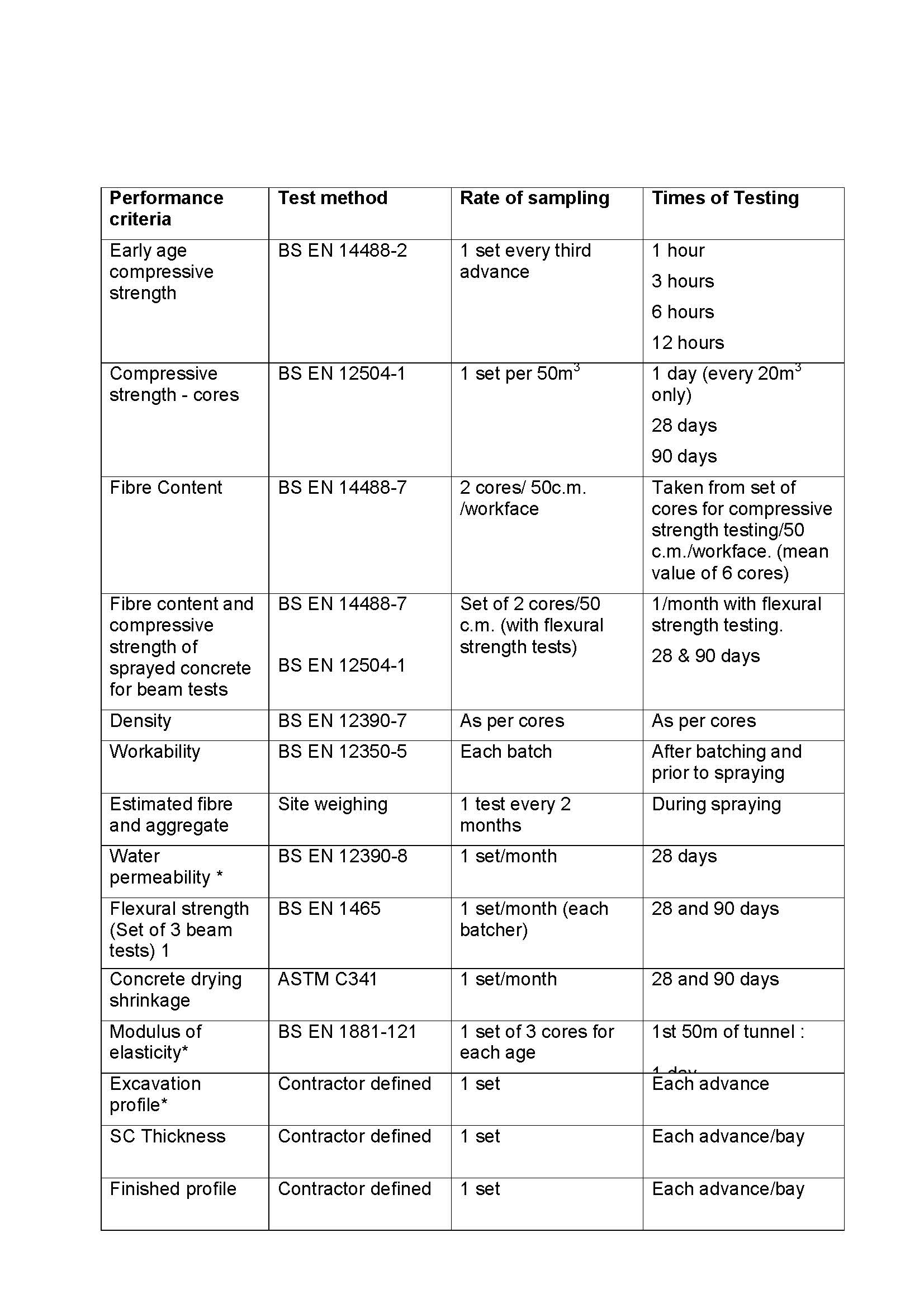 The number of quality tests associated with the sprayed concrete lining (SCL) is incredible. Just keeping track of it has been a job in itself. KT20, the Workmanship Specification for SCL, sets out the concrete tests and frequency.