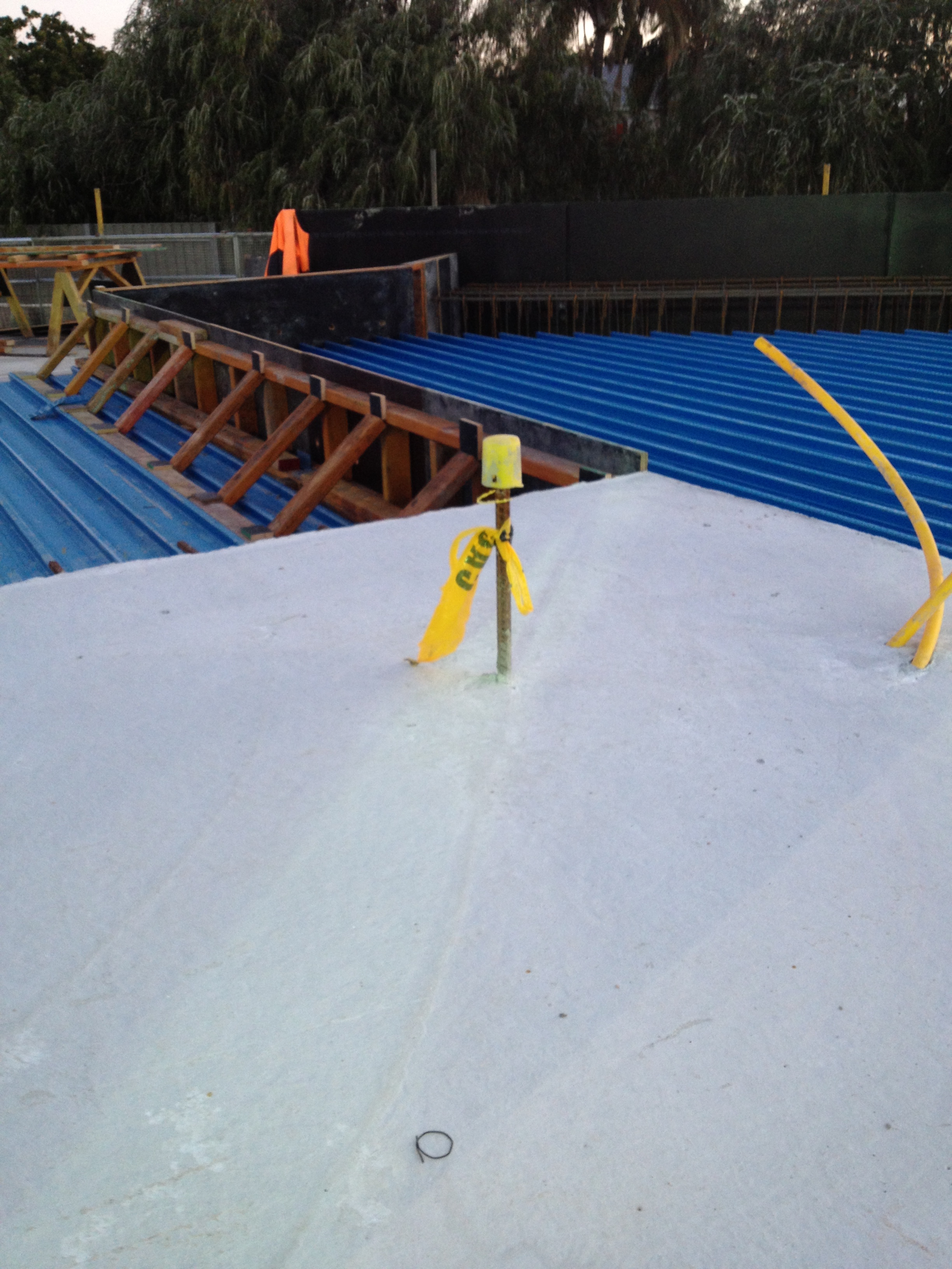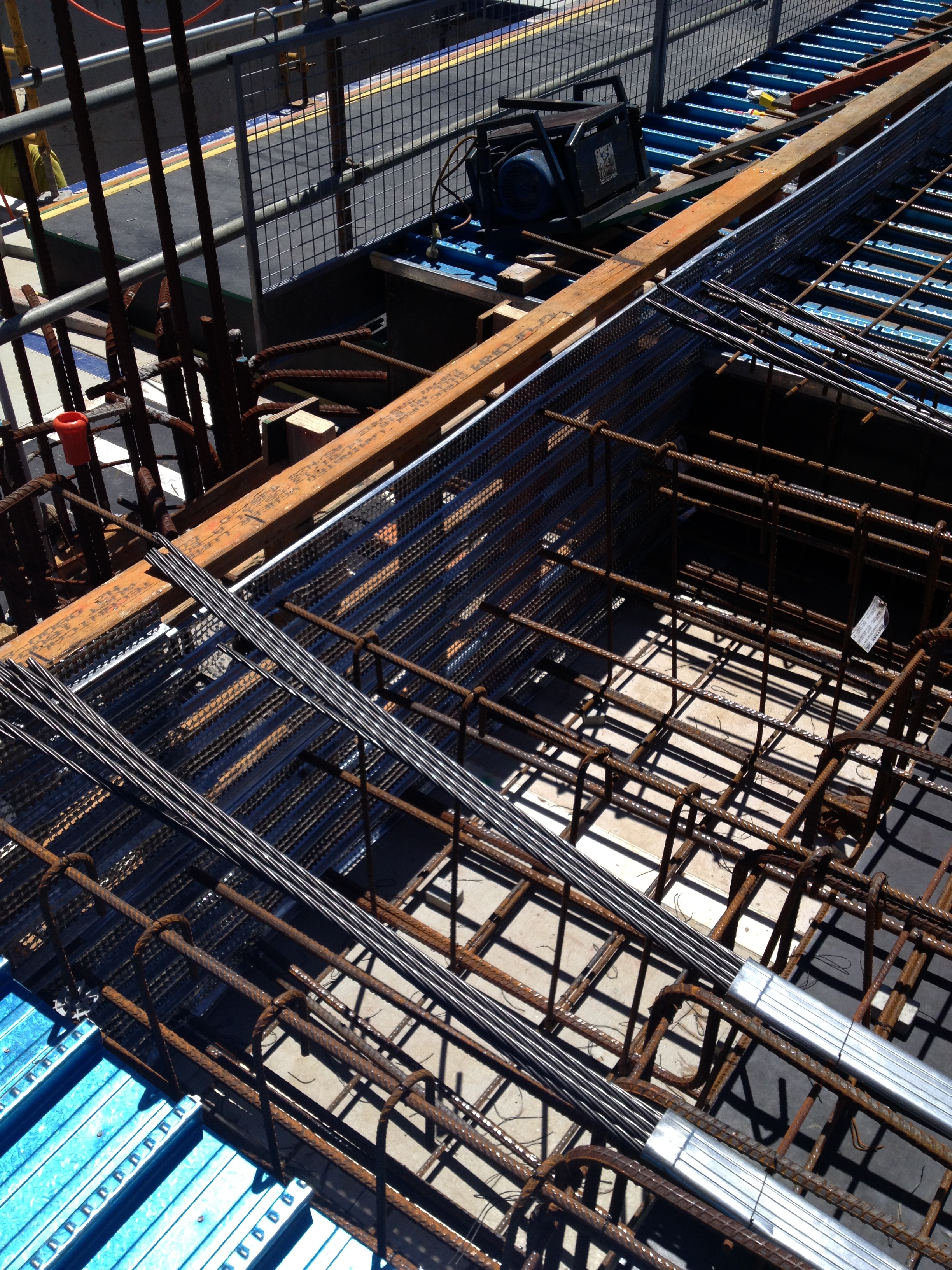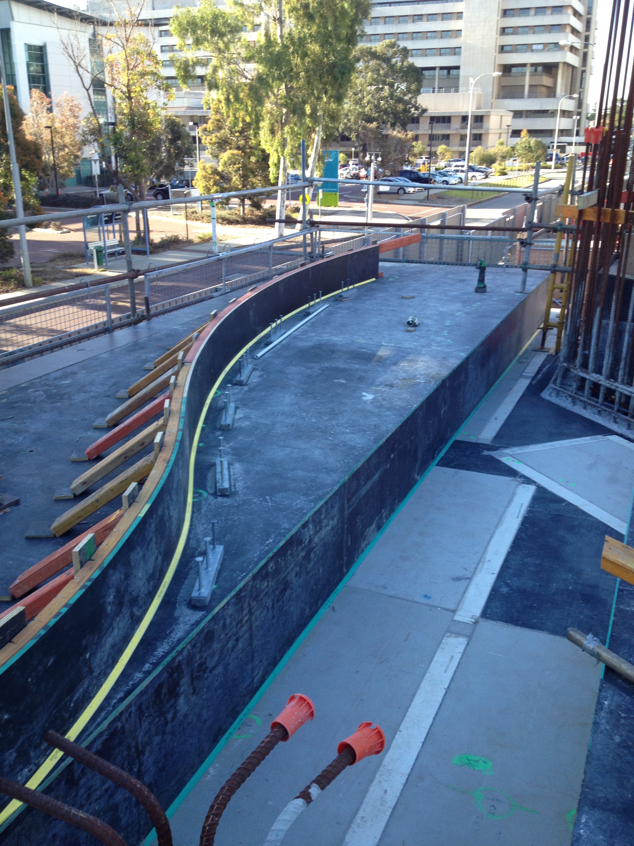 All that said the formwork is looking quite good. It is nice to see some curves after 7months of straight edges. What the image also shows is the cast in Halfen channels that the precast walls lock into. The locations of the channels had to be estimated by the delivery team as the shop drawings from the precast panels had not been produced due to a delay in procurement. This may turn out to be another problem to fix down the line if the channels do not allow enough flexibility to accommodate the panel brackets.