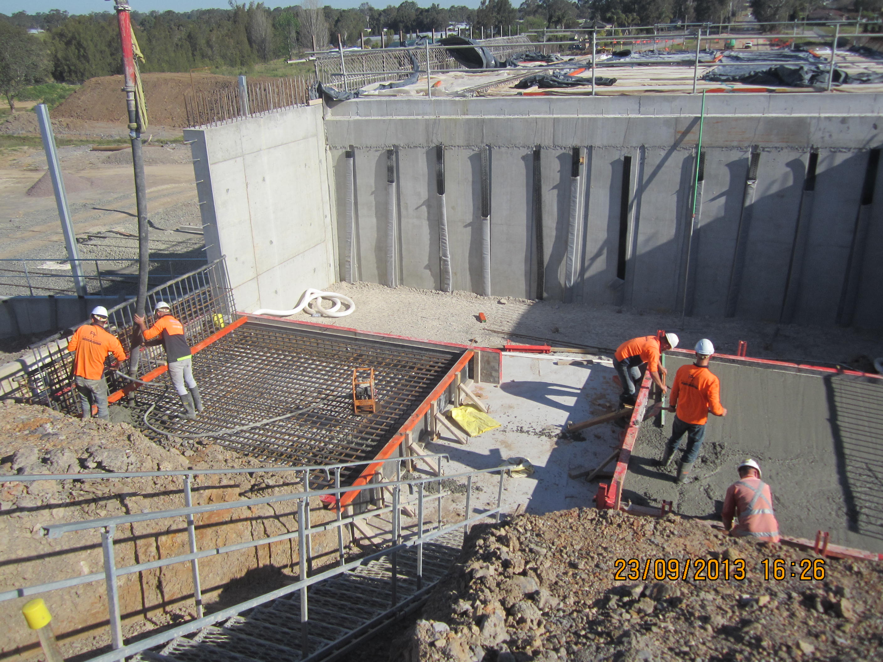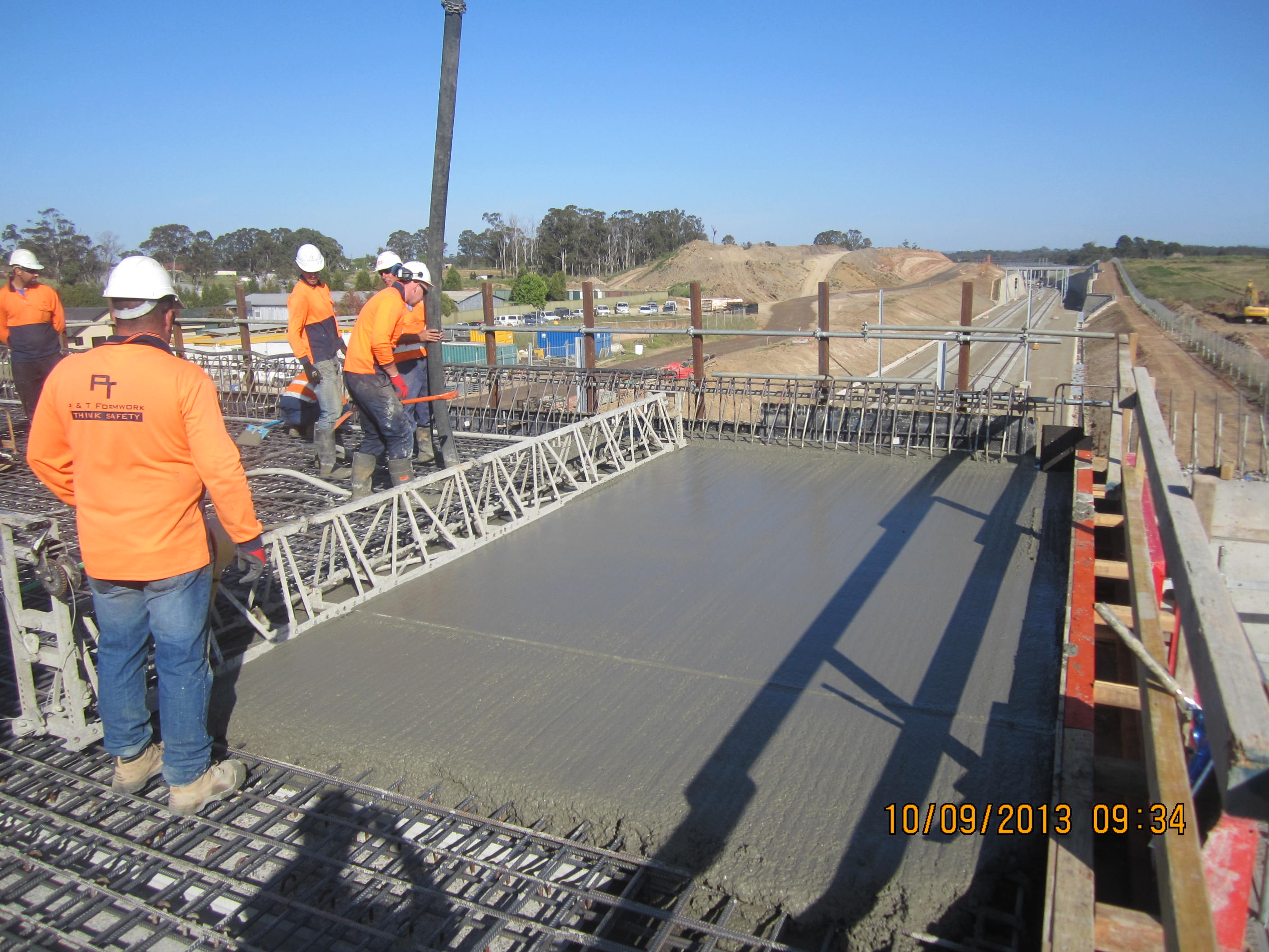 It has been a few weeks since my last post and lot of has happened since. The bridge deck has been poured on the 22nd on possible the worst day. No rain, still, but it was well over 30deg and the wind was right on the limit for operating a boom pump. The wind on the deck which is 9m high gave us curing issues as the surface started to dry and crack very quickly. As part of the pour plan I had worked out roughly what the rate of evaporation would be in accordance with the spec and with the wind gusting over 60km/h we had to constantly apply alcohol in a fine spray as soon as a portion of deck had been screeded. A bit of woeful mismanagement by the supervisor meant that we didn’t have hessian, plastic sheeting and the water hose ready to start curing the deck as soon as we should have and by the time we got it all covered there was a lot of cracking on the initially poured section. We have moved swiftly since as we stripped the scaffold on both sides over the next few days so we could start the backfill to the first Abutment RW levels. As a result we havn’t been up on the deck for the last couple of weeks so I have yet to see how bad the crazy paving effect may be. We backfilled both sides by 1.35m and poured the four base slabs for the first RW’s swiftly followed by the stem walls the week after and this week we have started the next stage of backfill for the next RW which will take us under 2m below the top of deck. I should have insisted on wet curing for the lower RW’s as all four bases had a fair amount of surface cracking on yet another windy day which means I didn’t learn my lesson the first time but more truthfully means I just couldn’t give the pour the required time or more accurately the planning time it required relying more on the subcontractor to do the right thing. I have found this has been the case on a number of occasions, when I was purely a site engineer at the start of the attchment I had the time to comprehensively plan a concrete pour and direct it but with multiple sites and a crippling amount of paperwork to produce I have to rely more on the supervisor and the subcontractor. It has often reminded me of what Richard and John would say regarding knowledge of those you work with and to never assume they know what they are doing. I have frequently been surprised at how little knowledge of concrete the FRP company demonstrates who now frequently ask me what or how they should do something which 7 months ago would have been laughable. My supervisor is similar but tends to know what he should do but hasn’t a clue why – I felt exactly the same in JM lectures except I didn’t even know what I should do!