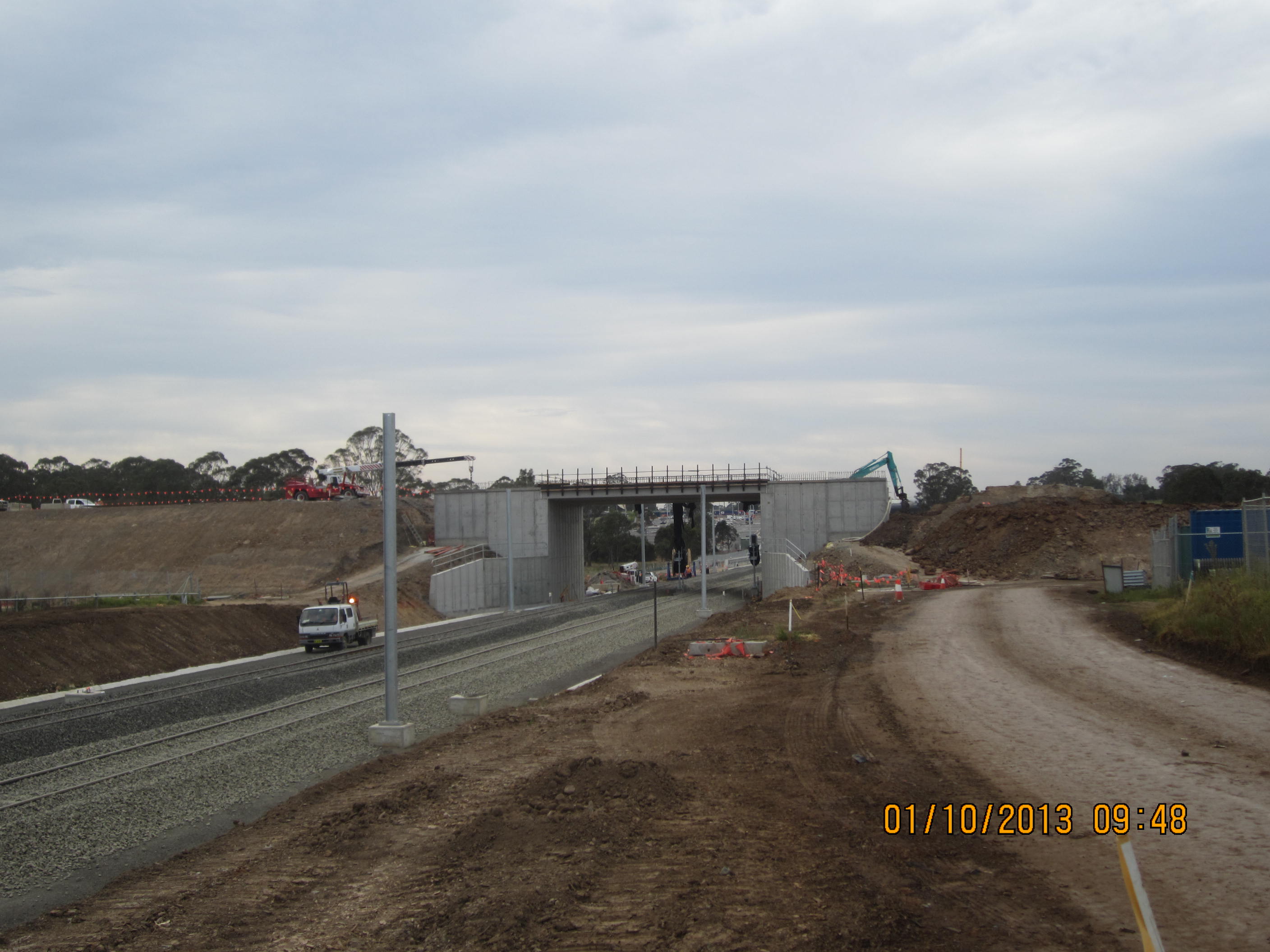 The aim is to open the bridge before xmas which is achievable as per the programme rewrite the other month but means I have practically zero tolerance for inclement weather or unforeseen problems. Having really pushed the subcontractor over the past few weeks we are a few days ahead in the programme but the critical piece will be the next backfill stage this week. We have a public holiday coming up which means no trades on site this weekend or mon, tue next week so we need to finish the next stage by this fri. This has already been compromised as the general superintendent ordered all machines to stop and knock off for the day over concerns of the dust levels which has meant we have lost a half day. The rail systems continue to be installed and all track has now been laid. The earthworks on the northern approach are now complete and the southern approach is probably only a week away from getting up to level. All this activity has meant it has been very difficult to build a bridge, it is almost likely other teams view the bridge as a hindrance and not the actual reason they are working in the area in the first place. The earthworks team seem to think they are special – which they are but not in the way they think! We did have a crossing point for plant over the tracks which got ripped out yesterday without any communication whatsoever which means to get from one abutment to another we now have to drive round onto the public road over Eastwood bridge and through the opposite gate which is a slight embuggerance. The sooner we get the backfill up to level and are able to traffic the bridge the better.