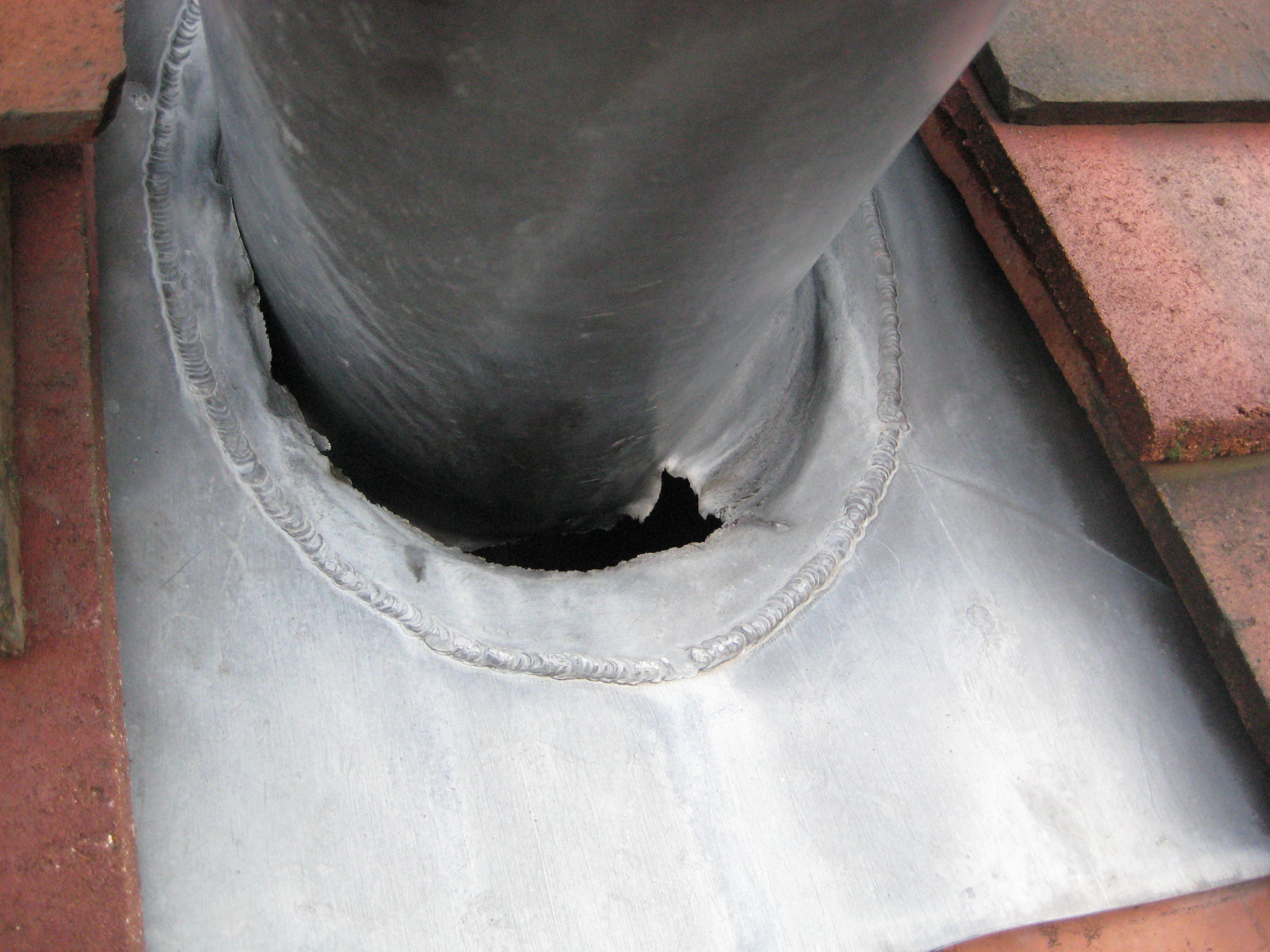 The only thing holding the vent in place was the lead flashing which, under wind loading, has failed quite catastrophically as can been seen above and below.