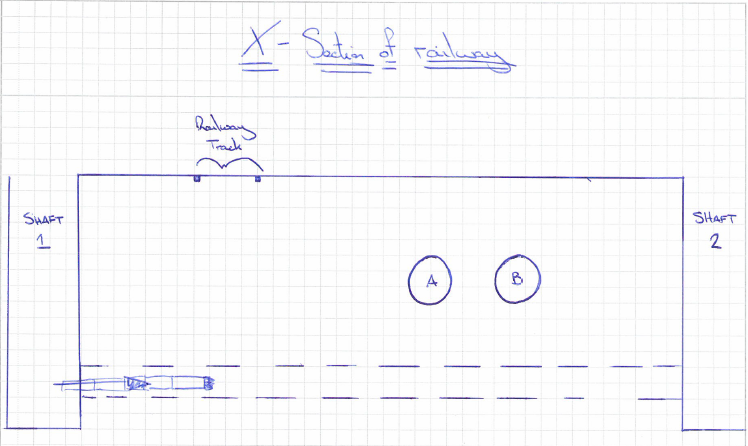 3) The depth of the tunnel was designed by calculating the live load on the rail way line, ensuring the crush capacity of the tunnel exceeded the live loading. It never factored in the weight of the soil between the railway and the tunnel.