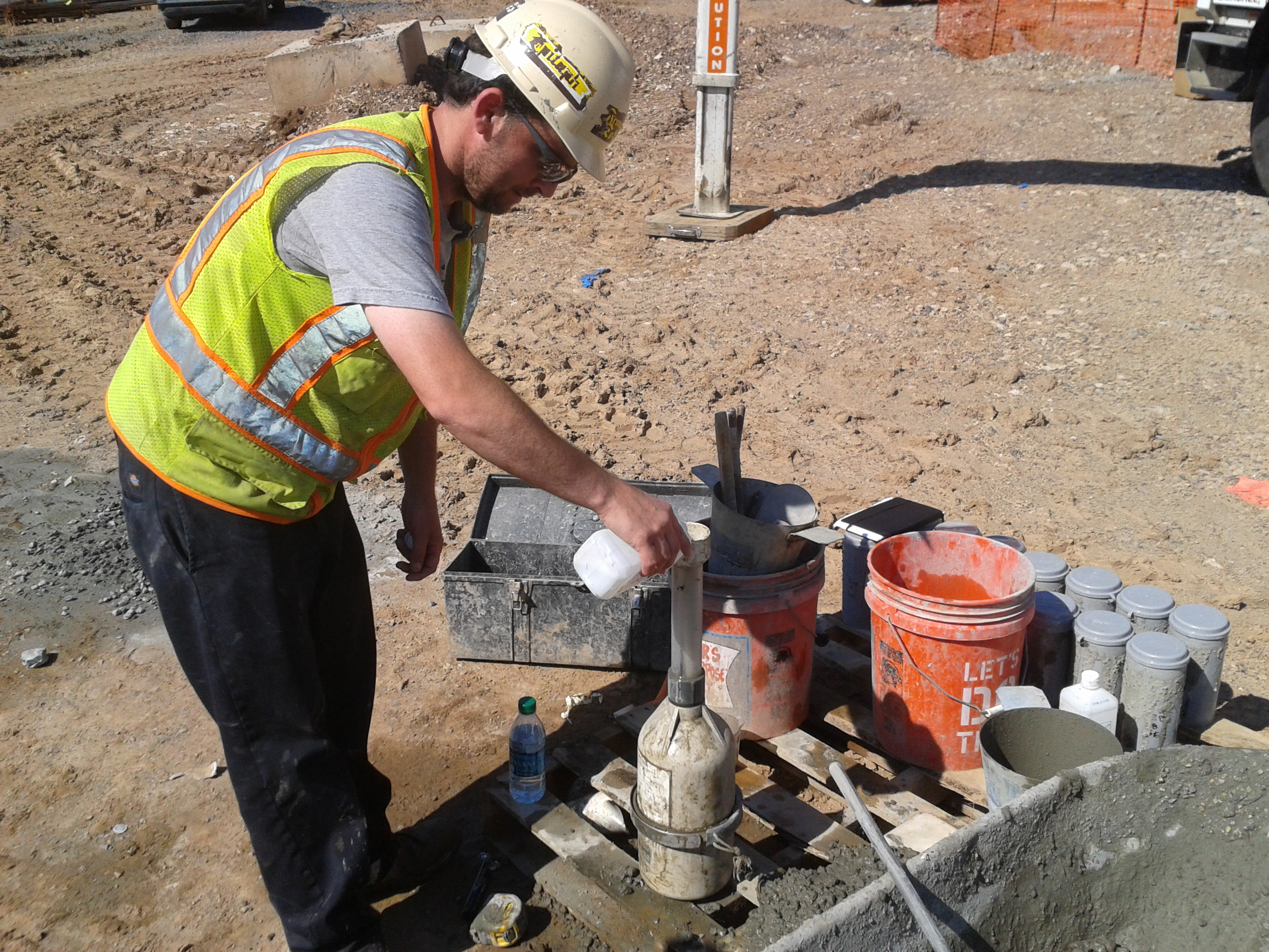 1. Pressure testing: using a pressure device, you measure the air content of fresh concrete based on the pressure-to-volume relationship of Boyles Law. Pressure is applied to the sample to compress the entrained air in the pores, then measures the change in air volume to detremine the air content. We couldn’t use this due to having porous aggregate.