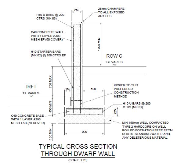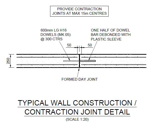The interesting issue the wall has raised is in the contraction joint detail and there has been much discussion as to what a ‘formed day joint’ (as can be seen on the picture below) entails.