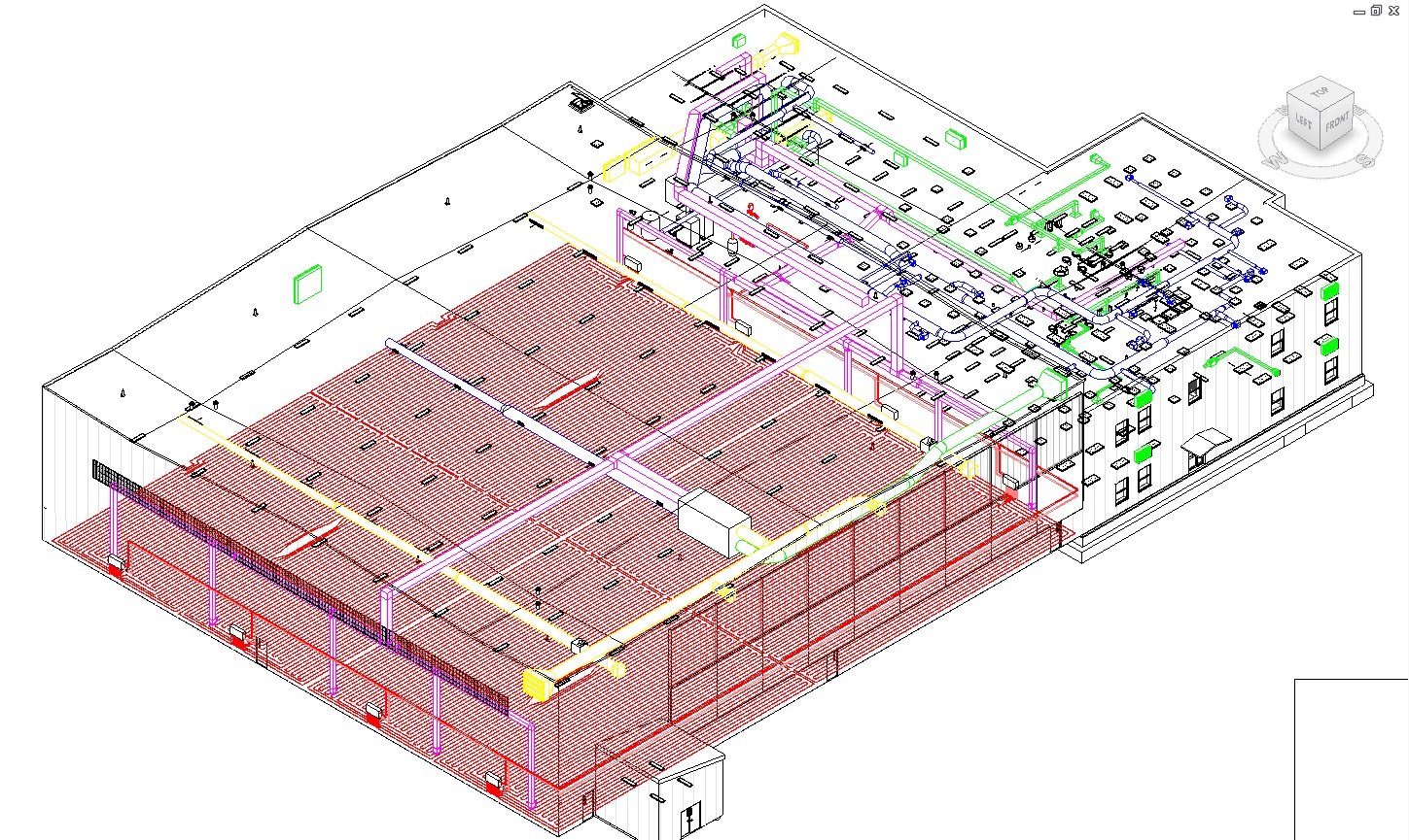 There are still some issues to resolve. Sometime this week the orientation of the trench drains in the centre of each zone was rotated by 90 degrees which has meant a last minute redesign. Originally my pipes were perpendicular and able to go under the drains. Now they are parallel they have to go round. The main hot water system is still not complete so I have not integrated that yet but that should just be a case of connecting to the header when it is designed. I am also completing the controls which are very simple. Essential the thermostats in each zone dictate the temperature that heating is necessary at whilst there are alarms to indicate pump failure, low flow rate and low temperature. The original brief called for a door switch so that the system would stop if the hangar doors opened but this only really applies to forced air heating systems where the energy could be blown out of the building. As radiant heating heats the object not the air, this is unnecessary.