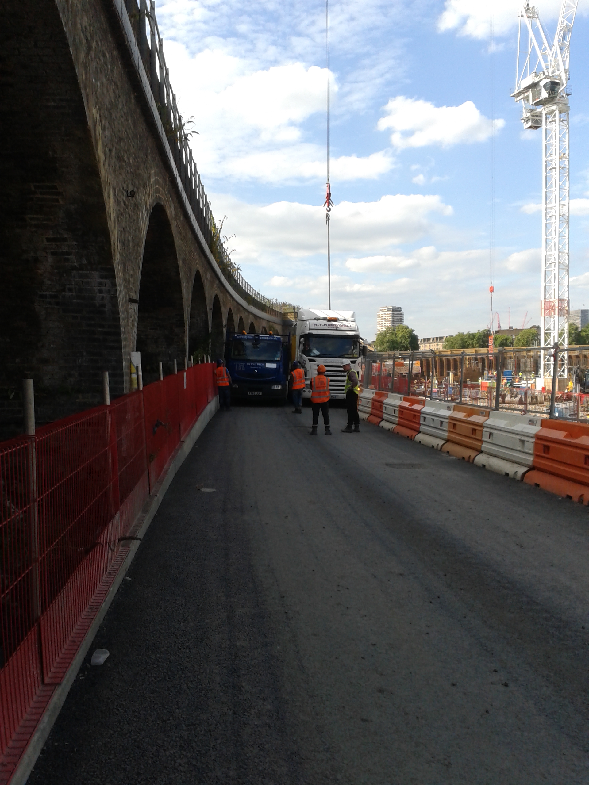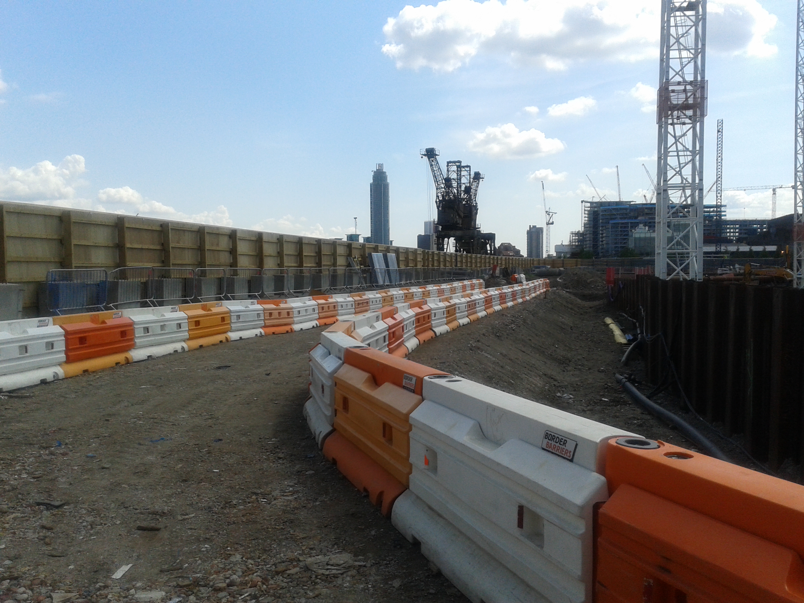 Constraints: The road is bounded by the Network Rail arches (the main line into Victoria) in the West, the sheet pile cofferdam of the basement in the East and the River Wall to the North.