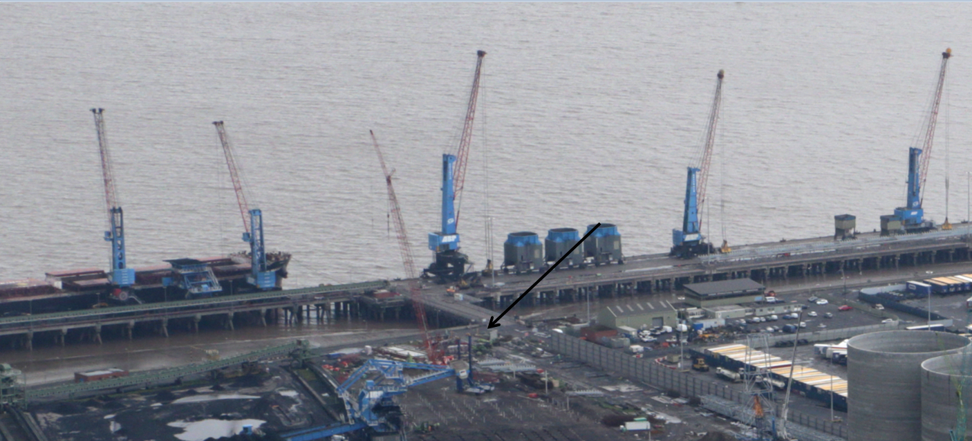 Unfortunately it was the primary HV line to the main unloading jetty (location shown in photo below), powering all the infrastructure including the cranes, where 2 container ships were being unloaded at the time. It was also during the crossing of the main access road to that jetty that we were only allowed access to for one 12 hour period. Balls.
