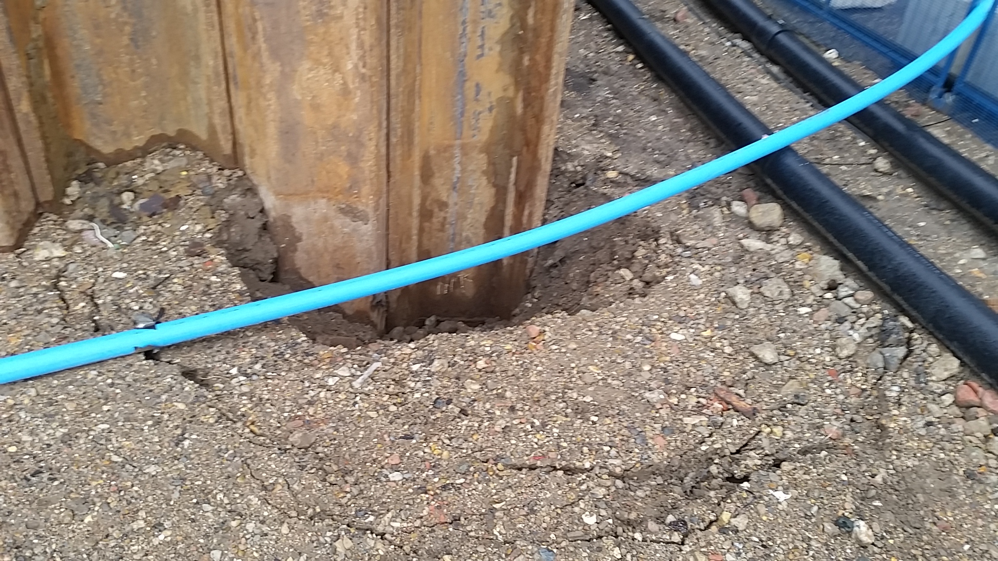 The constant pumping and removal of the water was also washing the fines into the hole creating voids causing ground loss on the surface behind the sheet piles. Luckily this corner isn’t right next to the power station or the railway line!