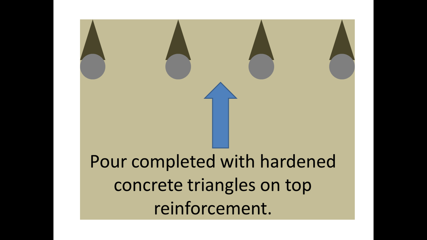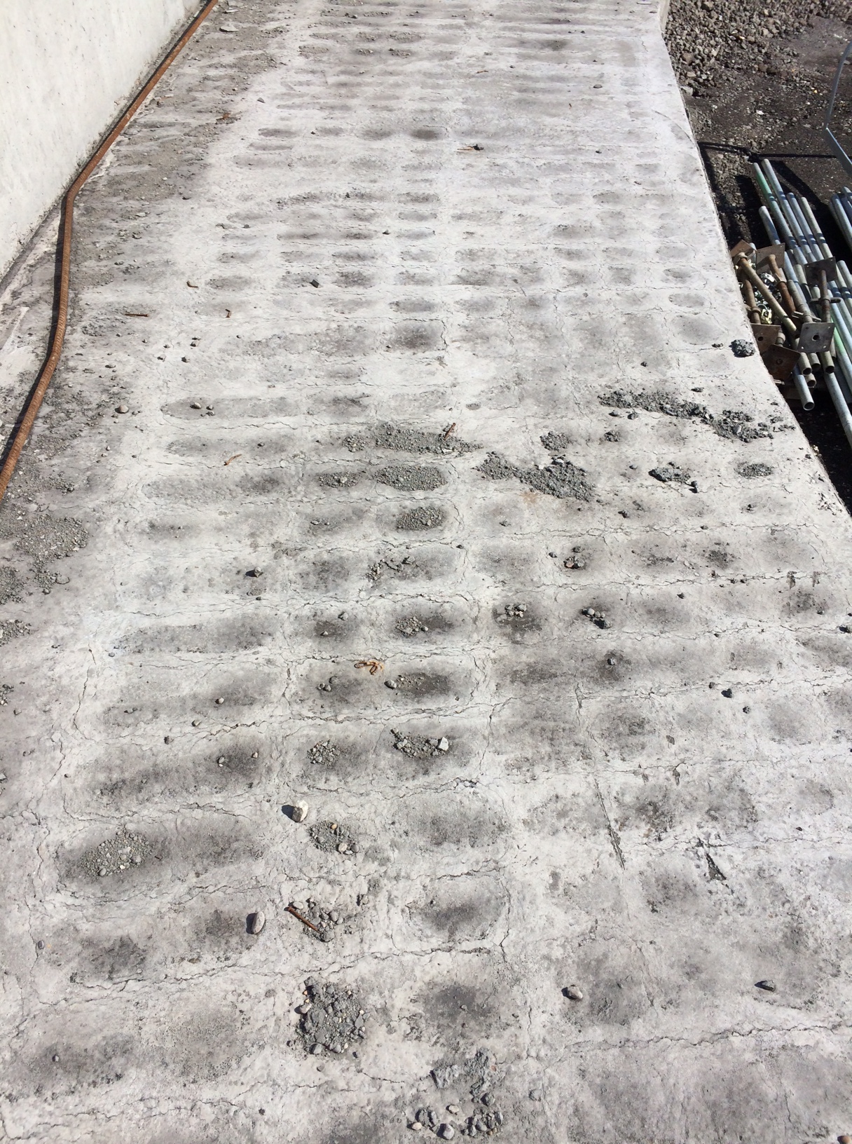 My next hypothesis was that the concrete was over vibrated creating the problem of segregation where the denser aggregates settle to the bottom while the lighter cement paste tends to move upwards allowing the lattice pattern of the rebar to be seen. This would be further accentuated by the practice of wetting up the concrete pre-pour as I have highlighted on previous blogs.