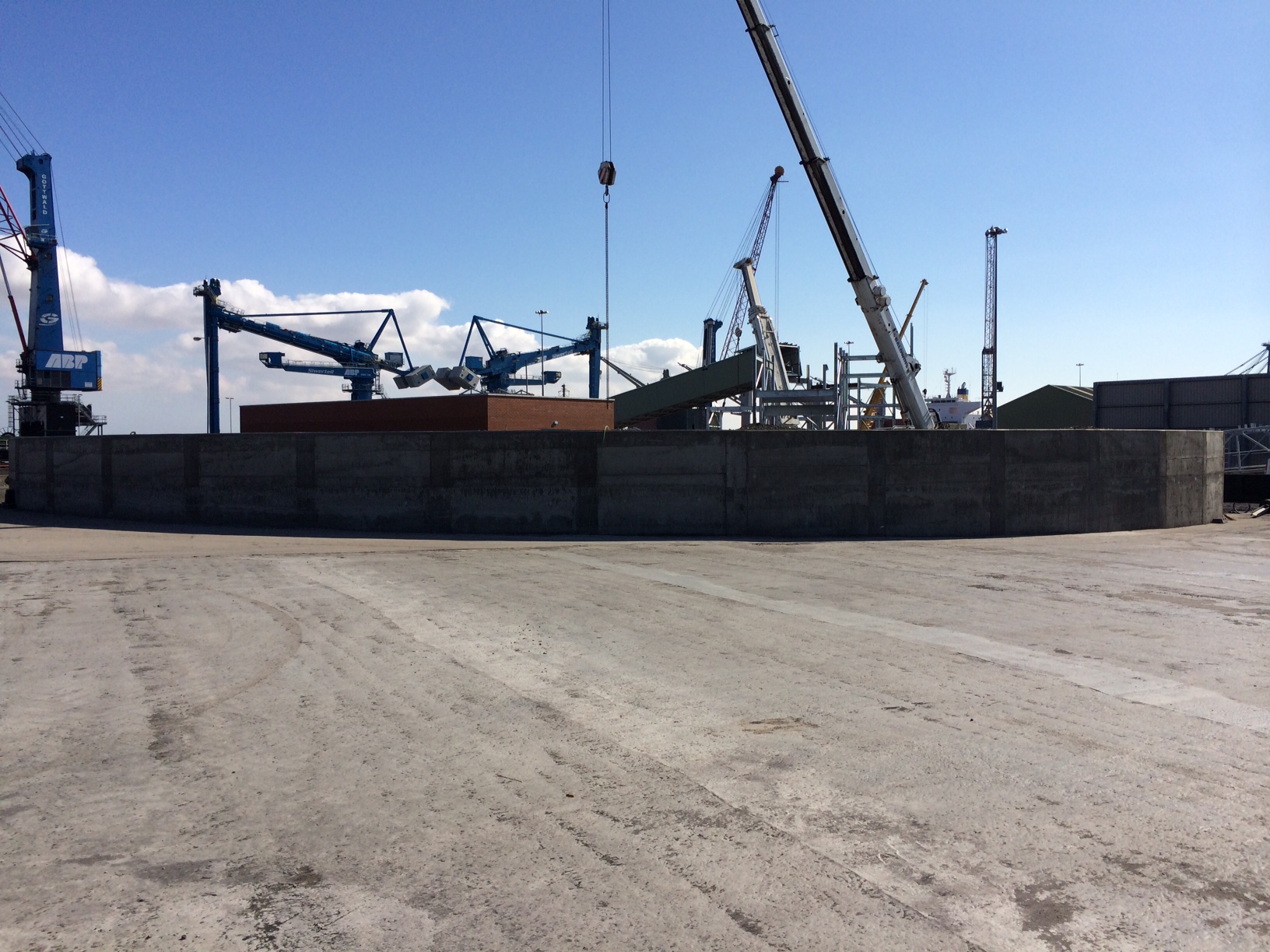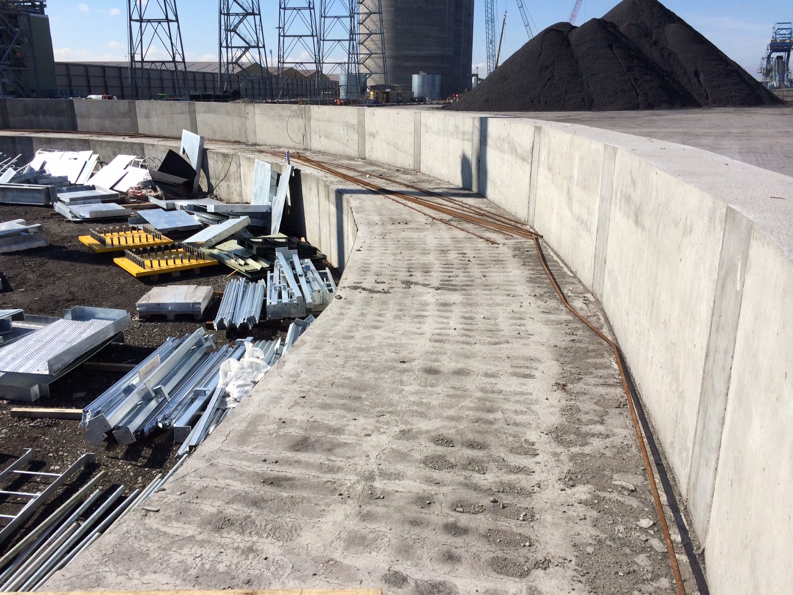 A RC beam for a radial arm coal stacker was recently completed on site as part of a £2M variation order to the original contract. The beam effectively supports a radial arm connected to a conveyor that will distribute coal evenly onto the newly created coal yard slab.