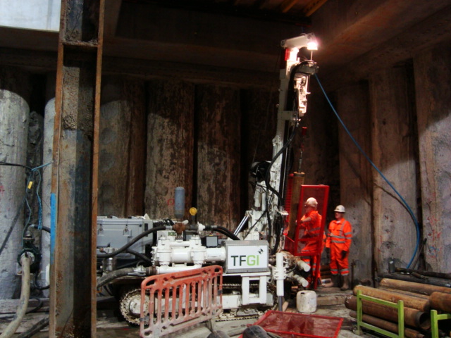 Situation. Although open to debate the exact reason for not completing a full depressurisation system prior to starting the excavation is not entirely clear. However the design authority (C138 Mott MacDonald) had stated the required pore pressure required before excavating below each level. From my last blog C502 (primary contractor Laing O’Rourke) are now having to install the depressurisation system 25m below the surface with only 6m clearance between the working platform and the bottom of the 89 slab level. To make the drilling more complicated, 12 of the 16 wells need the well tip outside of the contiguous pile wall, but avoiding the new crossrail tunnels running adjacent to the Blomfield Box being constructed by C510.