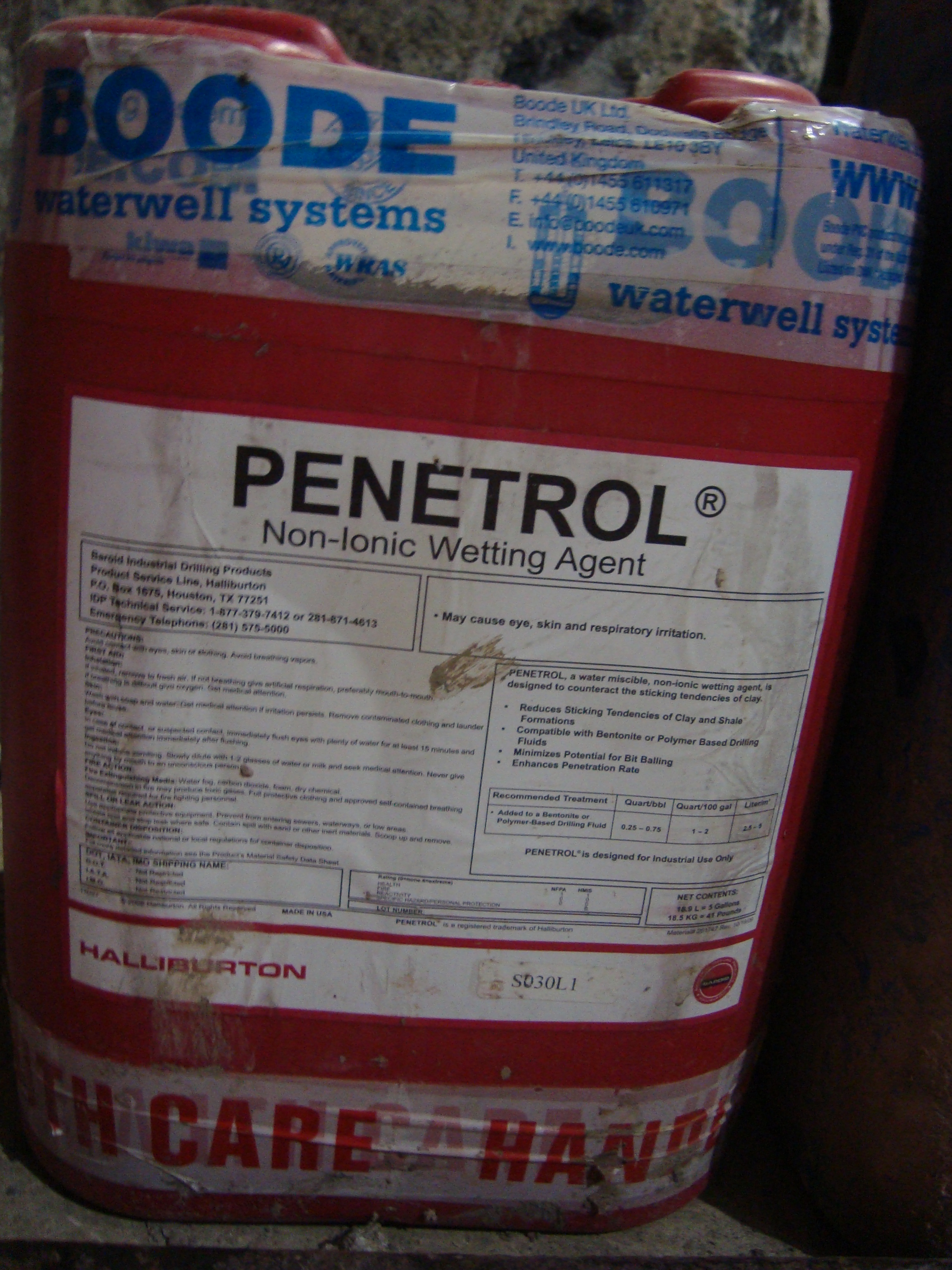 Pictures Right to Left, Drililng mud additive, Drilling rig set at 15 degrees, drilling rig