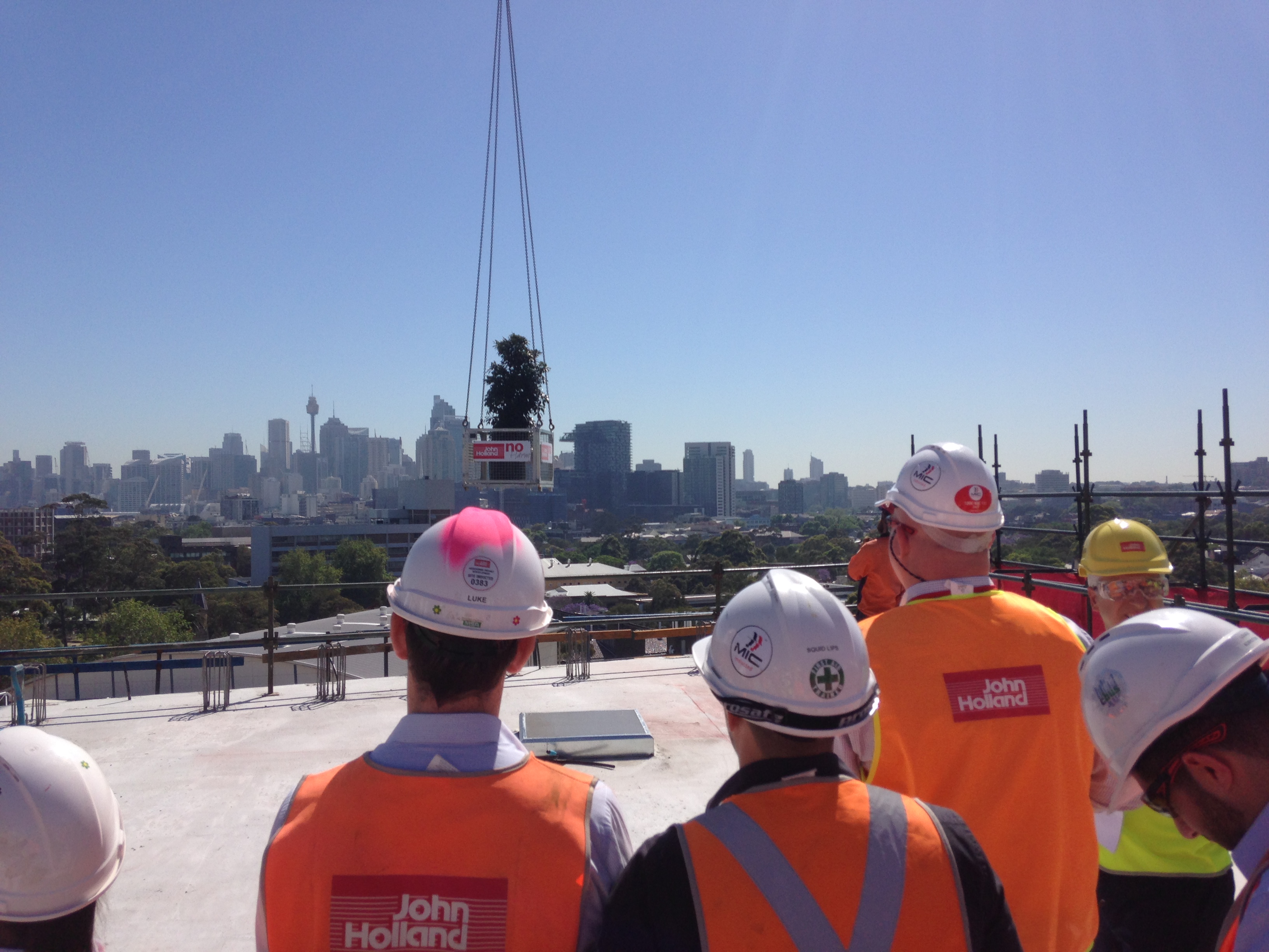 After many months of blood sweat and tears the final concrete pour for main structure of the Abercrombie Business school occurred last wednesday, with a topping out ceremony on Friday Morning, with guests and dignitaries from the university, John Holland and the Army of consultants and architects employed on the job. with a floor plan of 7000 square metres, 6 floors above ground and 3 basement floors and considering the partial deck collapse experienced earlier this year, as well as inclement weather and this has been no small achievement considering the first on ground slab was poured on 17th December last year. That having been said, the project is no running approximately 4-5 months behind schedule.