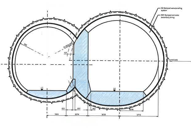 Having treated my self to a weeks ‘summer’ leave last week, I returned to what can only be described as widespread mayhem on the secodnary lining team. Three members of the team had left, including my line manager. Rats and sinking ships. I am still employed as a section engineer on the ‘binocular section’ of the crossover between the two running tunnels. The tunnel design and construction varies over its length dependent on function. For example, the running tunnels which maintain a uniform shape over a long distance, are driven by tunnel boring machine and lined with pre cast concrete panels for speed of drive. Enlargement works foR platform tunnels and concourses, including irregular shapes are ordinarily excavated and lined with steel fibre reinforced sprayed concrete. Uniquely, the binocular section uses a sprayed concrete primary lining, in composite with a cast in situ bar reinforced secondary lining. I will focus on this here. Binocular Section Function. In operation, the running tunnel will divide into two; the left hand side will form a crossover to the opposing running tunnel. The binocular sections are located in the areas noted EBX and WBX, at the point where the tunnel divides in two.The design is also shown in section, and is mirrored westbound and eastbound.