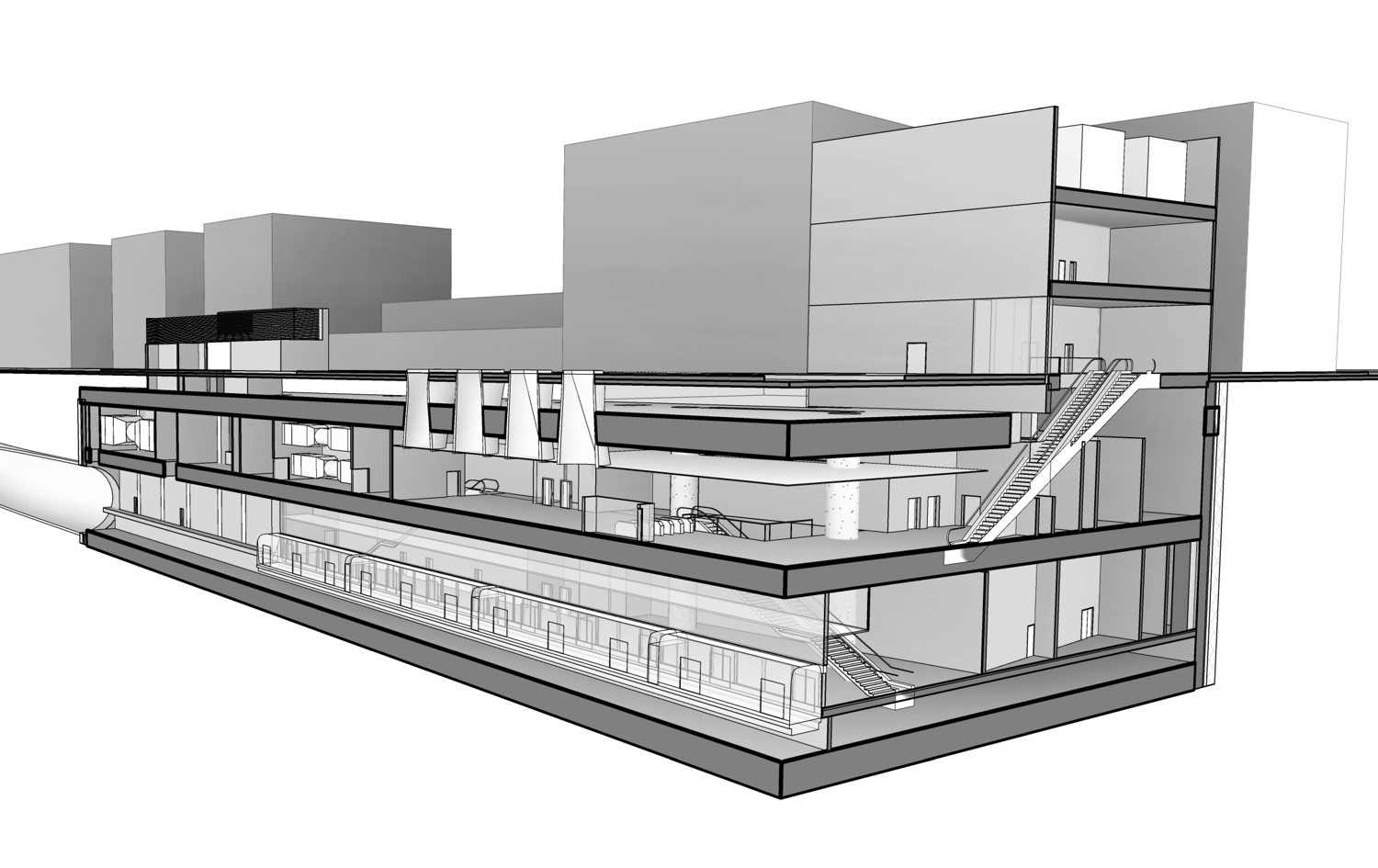 Construction Method: The construction of 1F2 is to be a bottom up construction unlike the Liverpool street station which was a top down construction. The use of a secant pile diaphragm wall with tension anchors into the soil behind the piles will be used to maintain the excavation. The structure will then be built from the bottom in a conventional method.