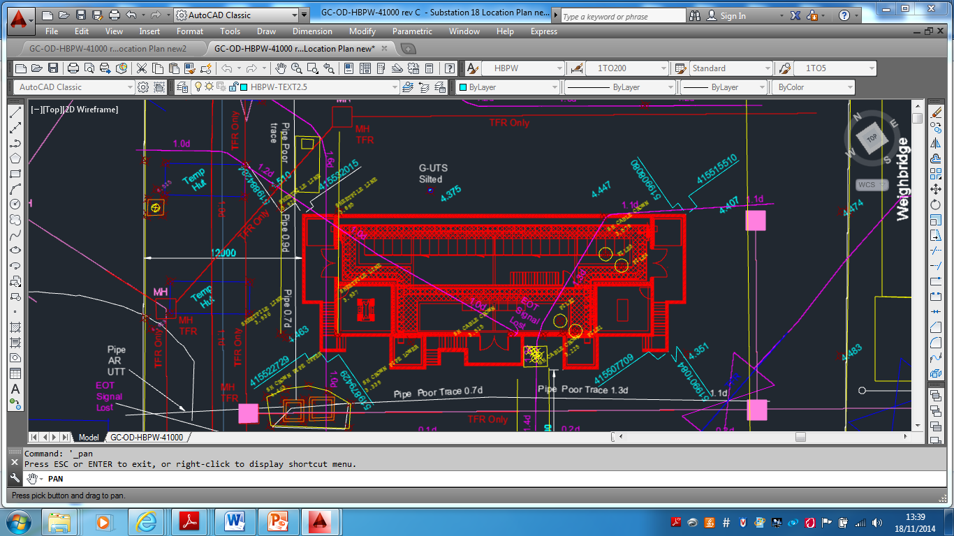Due to the speed of the discoveries I kept a drip feed of information flowing to the design co-ordinator and the clients representative, holding a couple of meetings to discuss my findings and suggesting the best way to proceed. At the end of my intrusive investigation I put together a powerpoint presentation and CAD drawing to summarise the points I had written in the geotechnical report that I had been concurrently writing on the site. I found that this was the best way to portray my points clearly without having to trawl through a full geotechnical report. I recommended a shift in the substation location that would minimise the amount of work required to relocate the services thus reducing the cost and construction time. I plotted this out on the ground and walked the client through the proposal. I outlined where I thought there were still risks to the construction and design which were predominately focused on access for construction and subsequent installation of the transformers and the undermining of the various services to get all the HV lines into the substation whilst maintaining the minimum 1m cover. I also fed these point back to the design co-ordinator.
