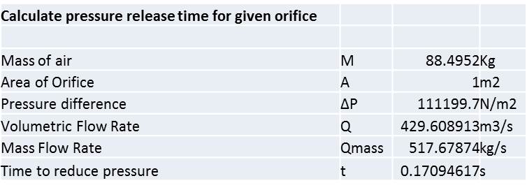 This suggested that the increase in pressure could be dissipated by a 1m2 vent in 0.17 seconds.