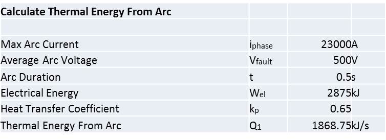 - The arc releases a certain amount of energy (Q), the proportion of which actually impacts the surrounding air depends upon a factor which accounts for the energy absorbed in melting the conductors and other losses.