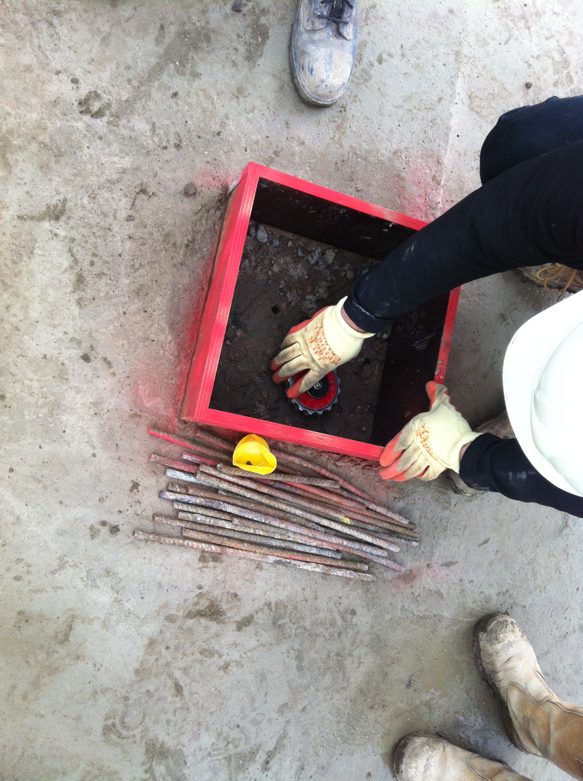 Day 2 and I witnessed a group of hairy Irishmen with their asses hanging out of their trousers (one for John) attempt to put a very large, prefabricated RC cage into hole. It didn’t fit. For 2 reasons: the hole was square, the cage wasn’t; and when the piles were cut down all the rebar was bent all over the place and wouldn’t fit through the spaces between the rebar. They got it in eventually but if Harry had seen how he’d have probably had kittens! It’s led to some cover issues. The rebar is touching the blinding round the hole in places, this probably isn’t an issue since it’s a tower crane base, therefore temporary, therefore the durability is unlikely to be a problem. But PCH are the problem children on site so we’re not given them an inch at this early stage. So the contractor will have to do some localised breaking out of the blinding to ensure correct cover, mostly since they have no idea what strength of concrete was used when they poured the blinding! They’ve learnt from it and the steel fixers will make the other 4 in the hole – sensible!