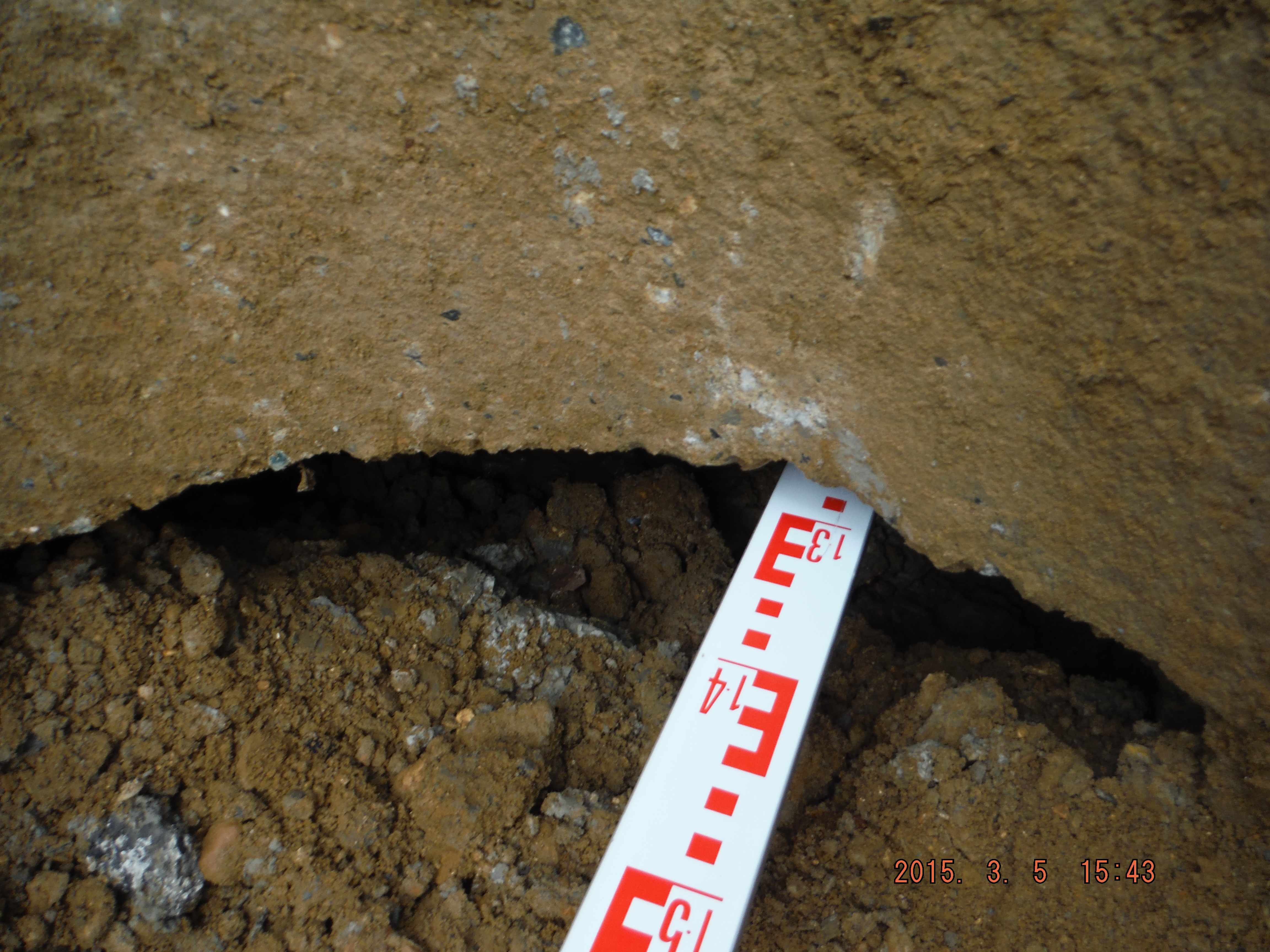 Eventually I had planned to underpin the wall against loose debris in order to construct the capping beam. Looks like that won’t be a problem anymore. Looking into the hole it looks to have been there some time – perhaps the void formed due to water running next to the old slab washing the sand/gravel away (not sure where it has gone to though).