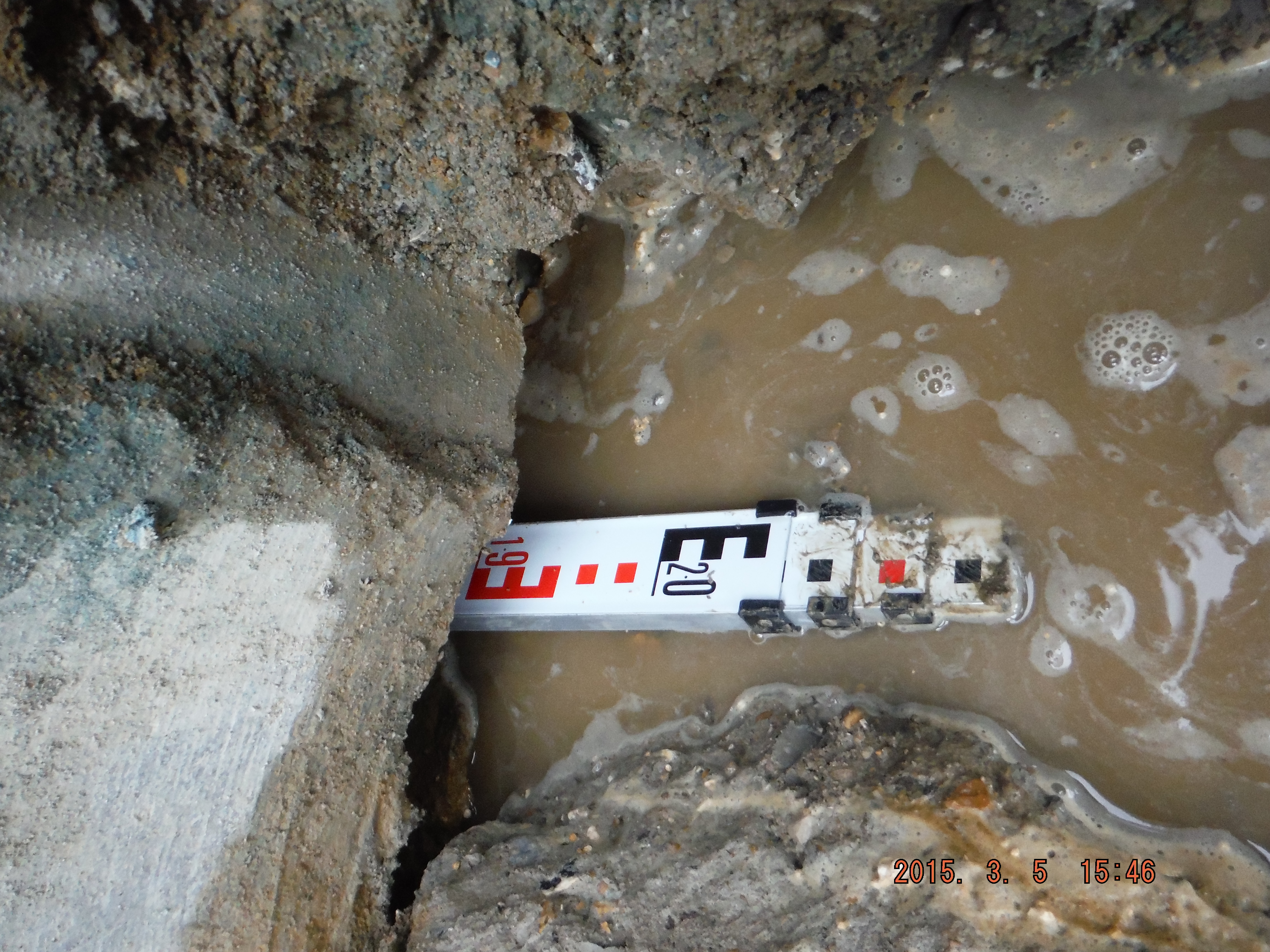 So what to do about the hole… Letter box fill – simply fill the void with concrete from above to close up the void. In the meantime there is already a weekly survey of the wall (mainly to check for deflection into the site, not subsidence of the wall) which has shown almost no movement so I am hoping that it remains that way for a few days longer. We only found the hole today so I am yet to resolve the issue, but as a consideration, if filling with concrete is done it’s roughly a volume of 1.4m (average) by 0.3m thick and extends along about 50m of perimeter so 21m³. Assume £100 per m³ and we are talking over £2000 at this stage and the void may well continue further around the site. Not huge but who pays, client, subcontractor or main contractor…