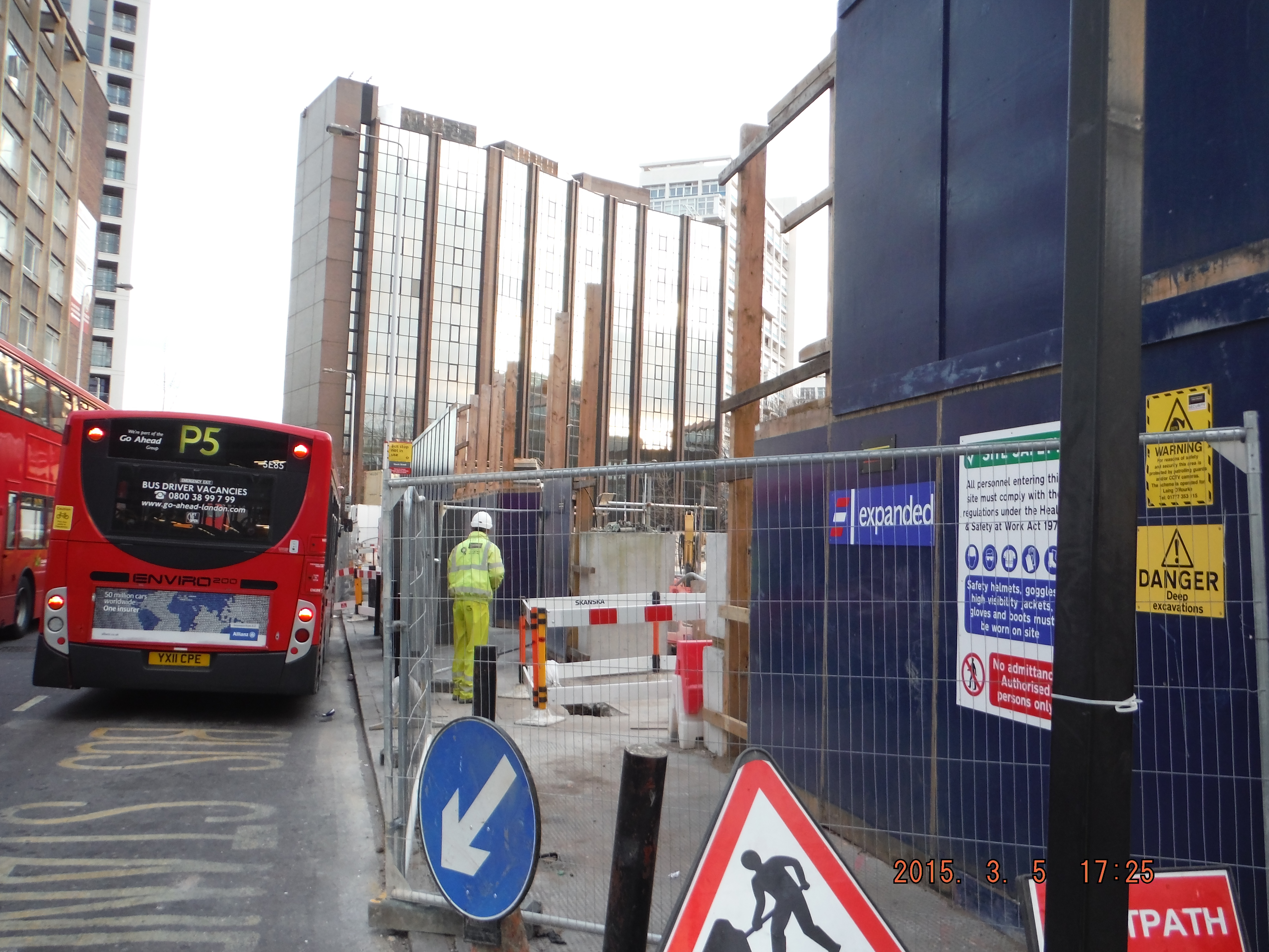 The hoarding move is progressing, but add in moving kentledge blocks close to a 3m deep excavation and a busy bus lane/rat run/cycle super highway there is room for error. Mitigation has been practical though – specific site safety briefings, inductions, lifting plans, segregation fencing and common sense, resulting in steady progress.