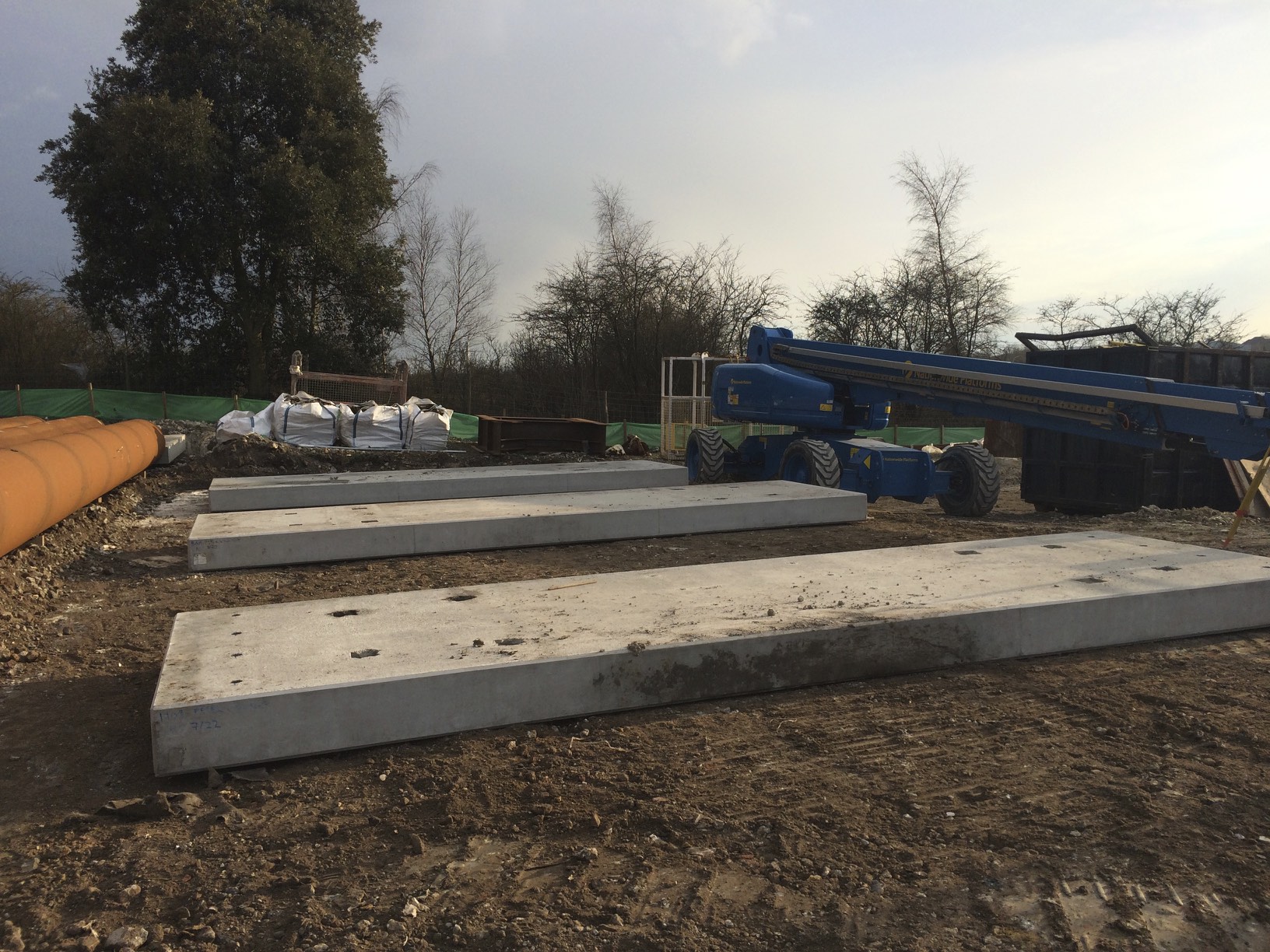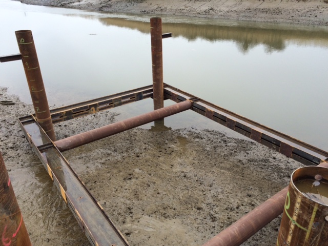 Solution – Level three precast concrete slabs left over from a design alteration on the crane jetty to create a welding bed. Tomorrow the center clutches will be welded together.