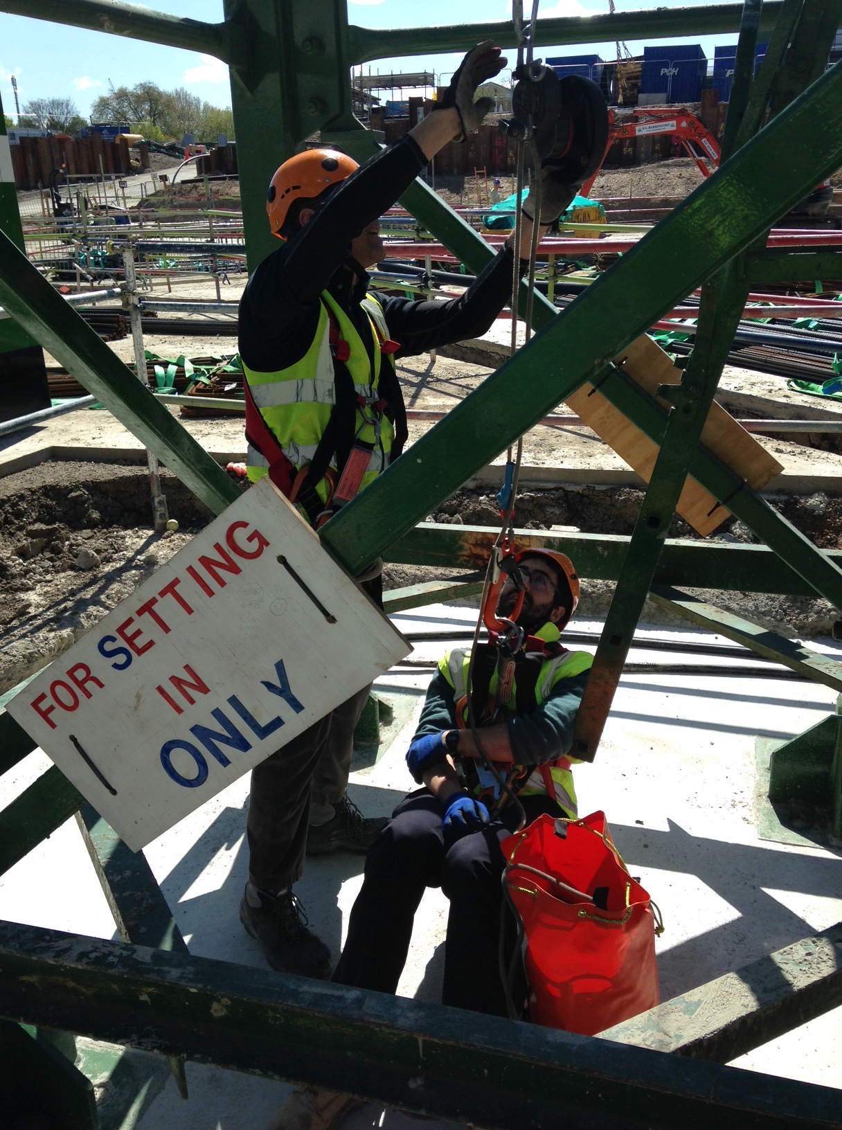 Is it the end of the world?  The Work at Height Regulations 2005 require us to have the capability to recover an ill / injured operator from an area where we have sent him to work.  That includes the top of a tower crane.  We’ve got a plan and we’ve got the kit.  We’ve got willing people who have had all the lessons but haven’t completed the course.  The Regs do not require the rescuers to be qualified, only “competent”.  So do I consider myself competent?  No.  Unless I have actually completed a full rescue serial I would not consider myself competent.  If the crane operator had a heart attack now I’d have a crack at it obviously, but I would be that confident.  So could we stage a rescue of our own so we had practiced it?  Until we are competent we must be supervised conducting this activity by someone who is.  So we would need to get the instructor, or someone else, back here anyway in order to watch us do our training.  At which point we’d get the qualification anyway!
