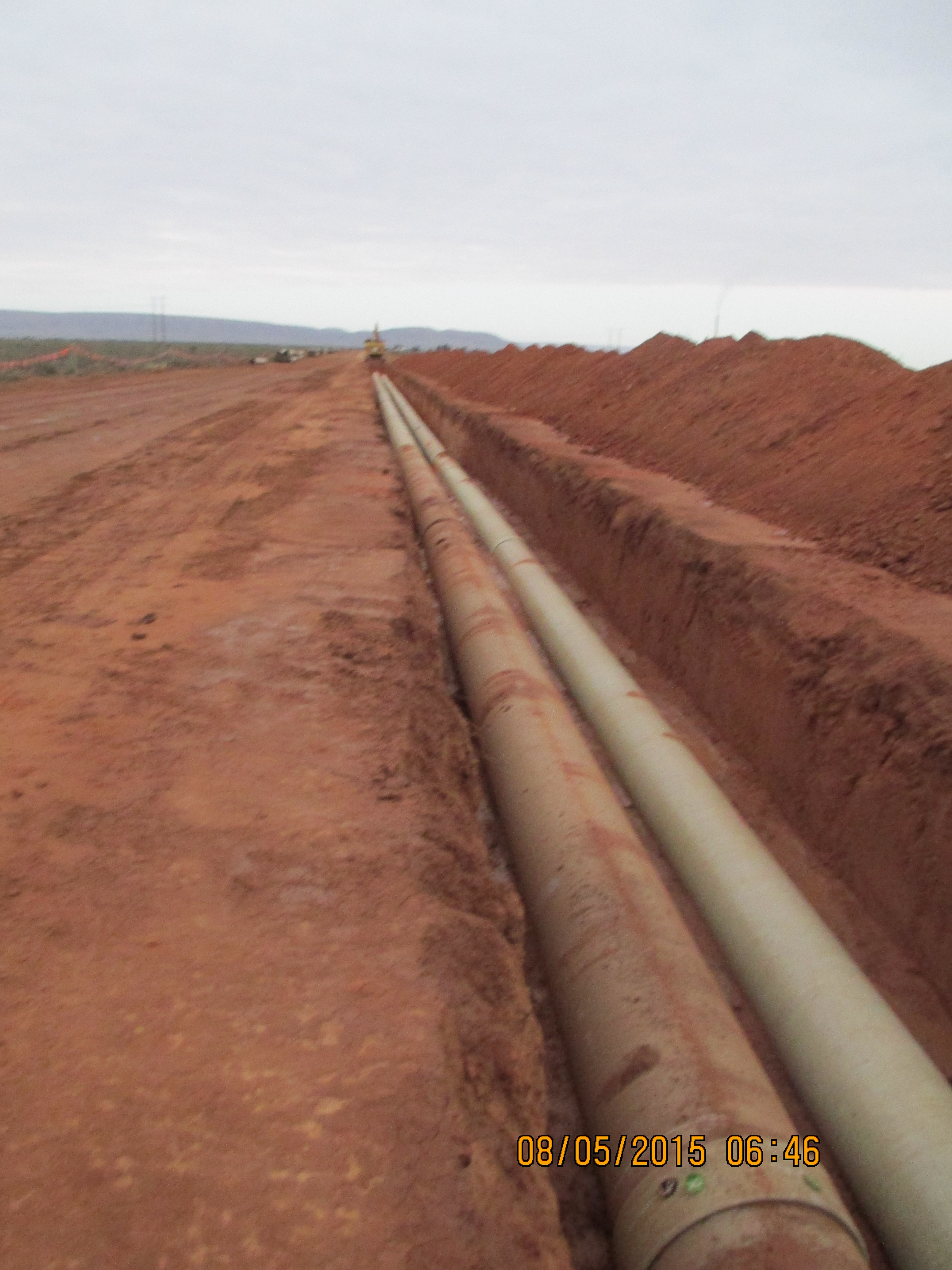 I have been on site now for nearly a month and am quickly picking up tasks from all over the place. One of the main items I have been put in charge of is a 6km pipeline running from the Spencer Gulf to site, designed to carry seawater in and a separate pipe to return the brine water. The pipeline was designed by KBR, procured by John Holland (JH) and is in the process of being installed by York Civil. Up to now no one from JH has taken any ownership of the pipeline so it seems a good chance to actually contribute something worthwhile to the project. I have been looking after it for two weeks now and these are some of the issues I have come across: