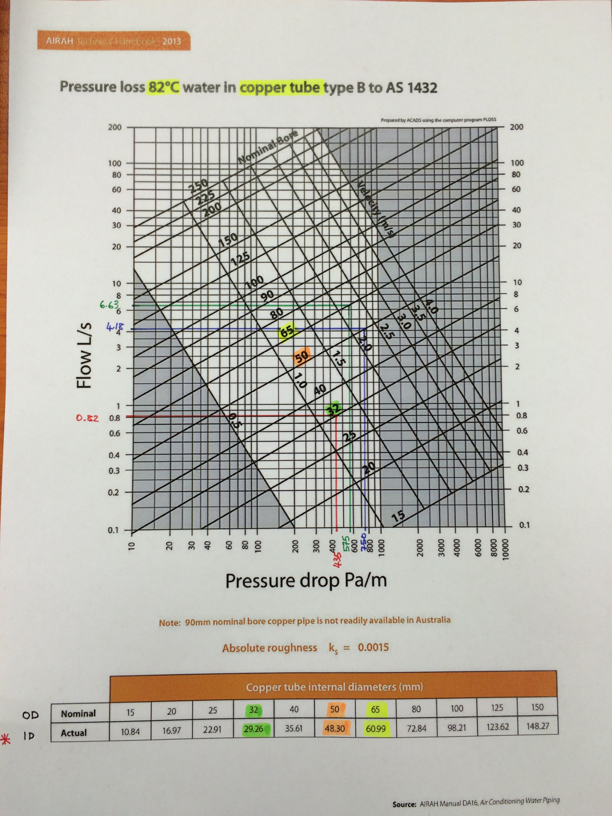 So you can see, assuming that you can change from steel to copper pipe (without identifying the nomenclature change AIRAH uses) is incorrect and results in under sizing your pipes thus increasing pressure losses.