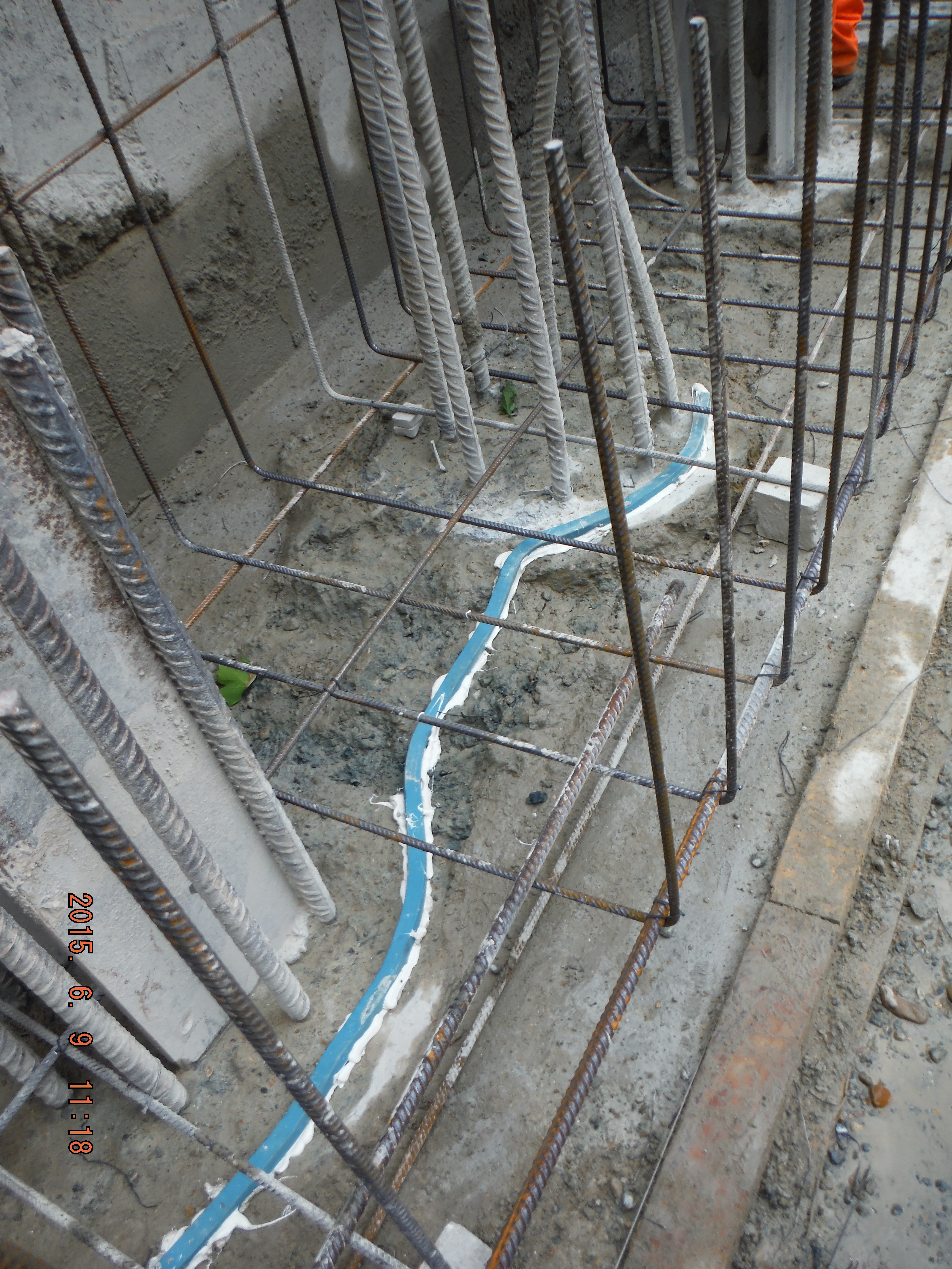 - The reinforcement cage needs to be installed after the hydrophilic strip has been laid. Therefore during the installation of the cage great care has to be taken to avoid standing on the strip.