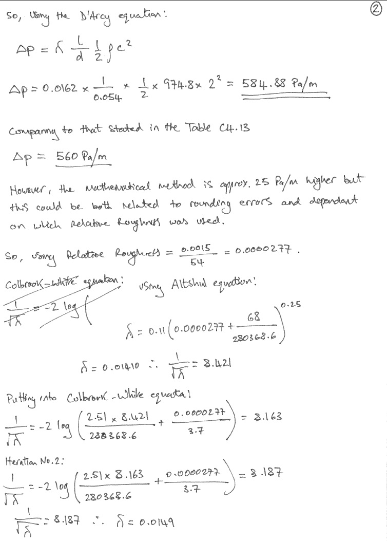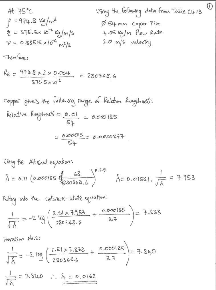 The friction factor, λ (for turbulent flow) was obtained mathematically from the Colbrook-White equation which is more accurate than using the Moody chart: