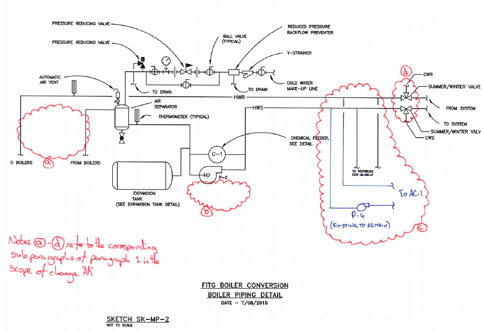 ‘The boiler piping detail shall be replaced with attached sketch MP-2. This modification includes the following: