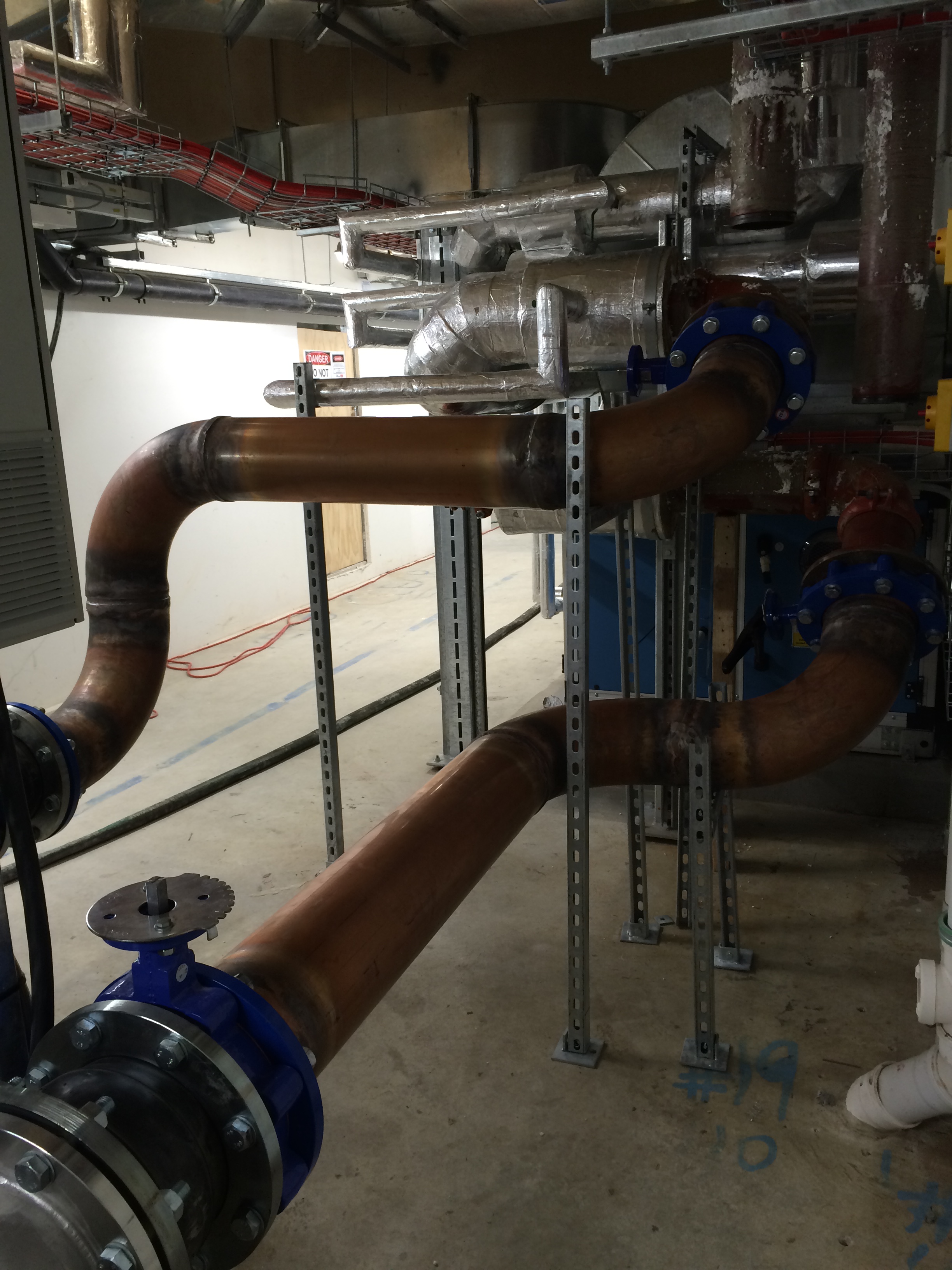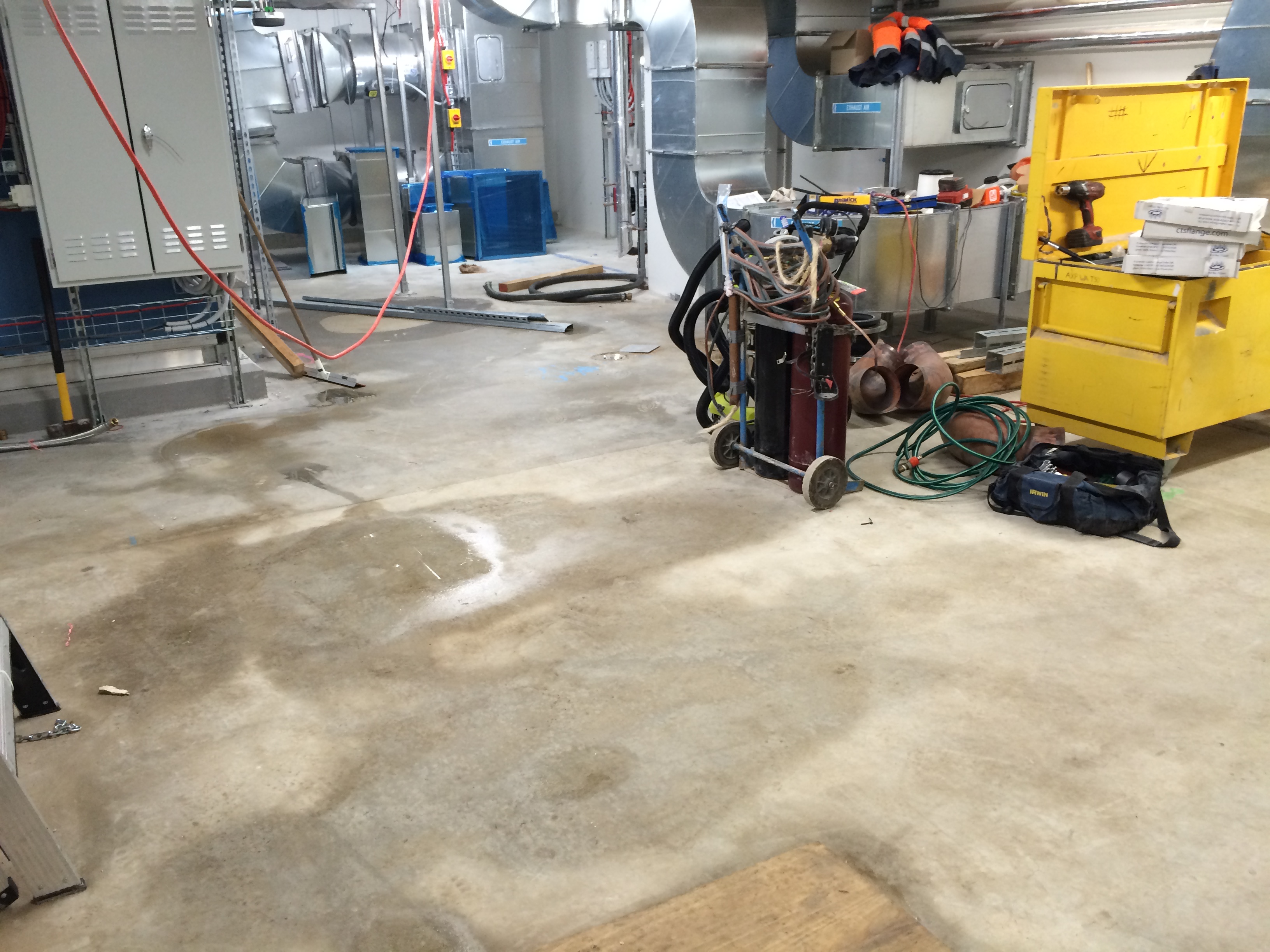 At the heart of both of these issues was commissioning the CHW system in bit-part and not all off the main pumps in one go. However, it was deemed more important to get the CHW system partly operational to cool CCR2. I would have thought another way of providing cooling could have been done through temporary FCUs placed in CCR2. Another conclusion is that floors should be water sealed prior to any pressure testing or flushing in order to limit damage caused by potential leaks. This issue also highlighted that there should have been localised bunding put in place like there is in other plantrooms. Consequentially Fredon’s flexi hose failed its off-site pressure test and so they have continued to use the copper hard coupling throughout the remaining flushing of plantrooms across the project.