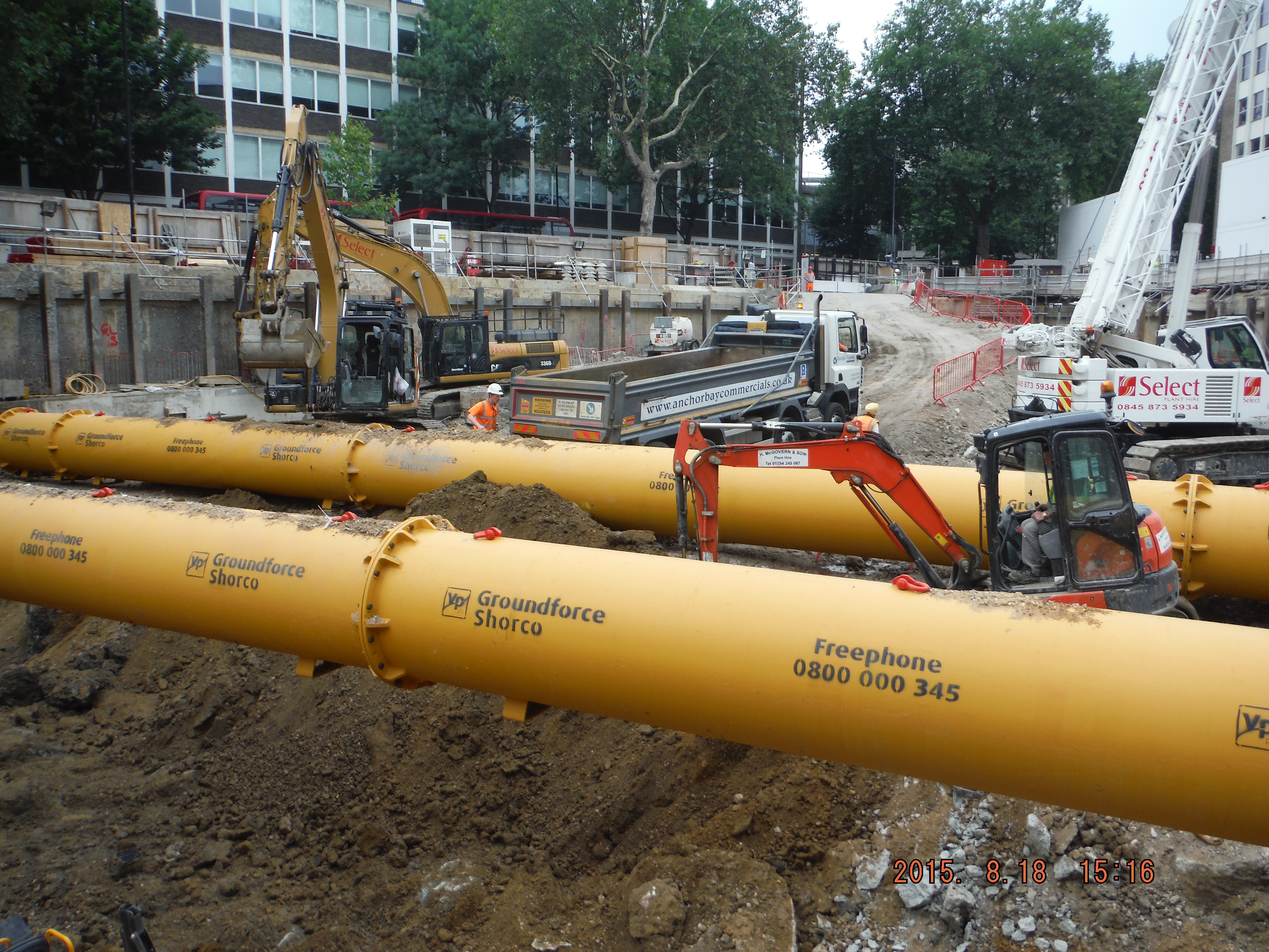 So what? Capping beam pours have been completed and props installed shortly afterwards. With over 10,000m3 of sand, gravel and clay to be removed from the site the emphasis is on digging, i.e. loading the props and therefore loading the capping beam. In short, the time for the capping beam to reach 30N/mm2 has reduced from a few weeks to a few days. To solve this there were numerous plans to crush more cubes, do temperature matched curing and place thermocouples within the capping beam to assess in-situ strength. However there was no time to see what might happen/work, so the mix design was altered to attempt to get a quicker strength gain. (So much for previously trying to avoid cracking!)