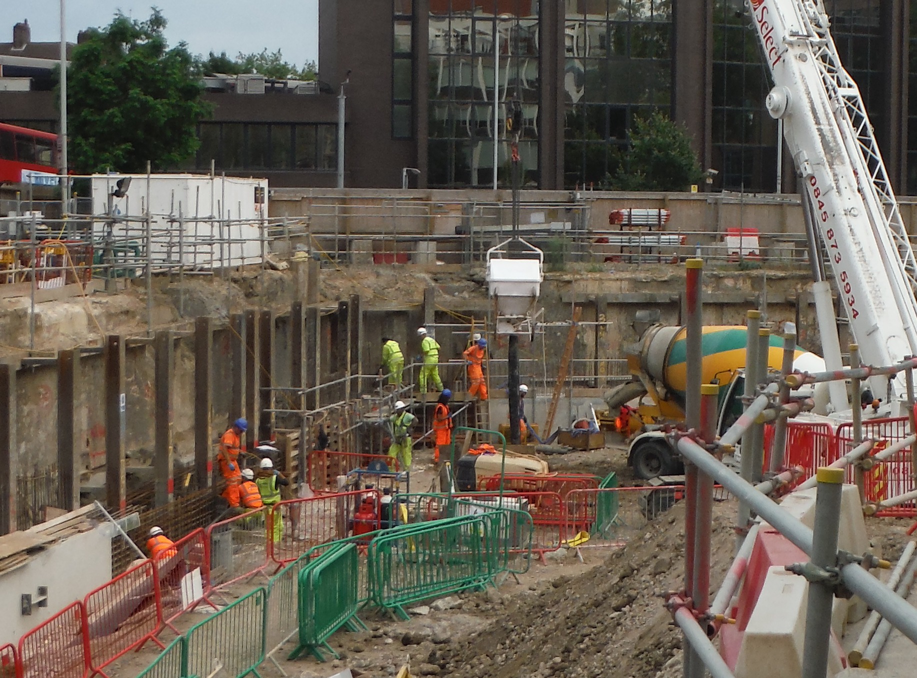Next comes the health and safety advisor’s visit. On a difficult day with machines breaking, particularly low consistence concrete (to gain high early strength) making pours difficult, a 5m deep excavation confining the site further and a muck away lorry to be loaded every 15 minutes, managing every activity was challenging.