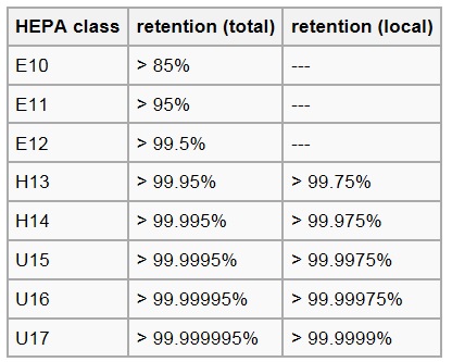 HEPA is a standard and not a type per se, set by the United States Department of Energy (DOE) and is only awarded to filters that satisfy certain standards of efficiency. To qualify as HEPA an air filter must remove 99.97% of particles that are of 0.3 micrometers (µm) in diameter.