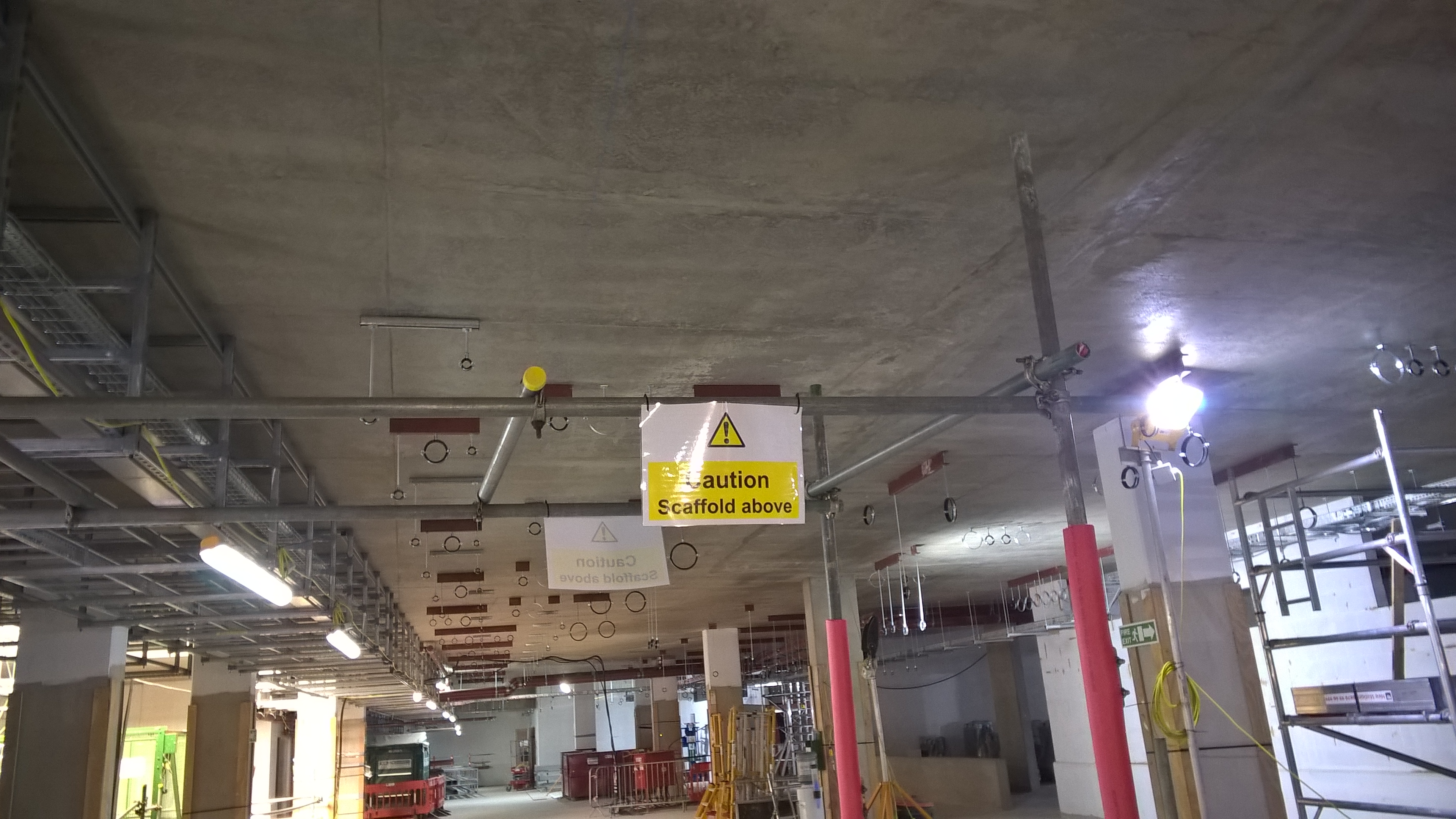 What precautions have been made to stop things falling of the high level floors? We are going to be installing a massive screen which jacks up the building to protect the workers and their tools from falling off. At over £100k it is a serious piece of equipment to mitigate the hazard. Have you got tethered tools or k-guard as edge protection?