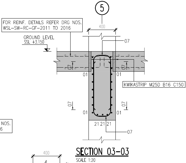 The slab to shear wall connections in the tower basement floors have been designed using kwikastrip. These are pre-bent bars that sit within a case and then are bent on site at a later date.