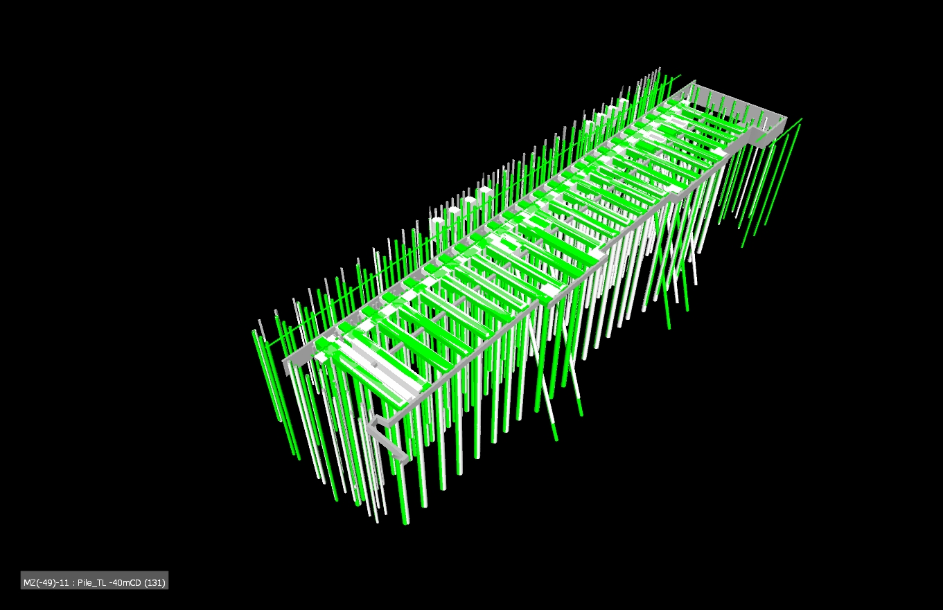 The piles were designed in groups, critical and large groups first. They were set out in grids to try and deconflict with the existing piles and then moved as a group and tweaked individually until a group worked with in the knitted structure. The biggest headache were the racking groups as the spaces was very tight. To try and negate the overall draw down of old and new groups, new piles, on the whole, extend much deeper than existing and carry the party share of the loads. In some cases the existing piles will be disconnected (a slice removed) from the existing deck to as they are too close to new ones.