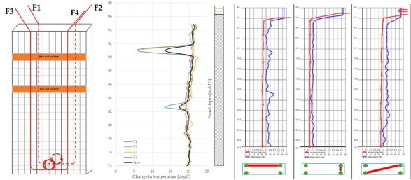 TIP vs Sonic Testing (L-R Lay out of fibre cables, TIP testing, Sonic Testing)