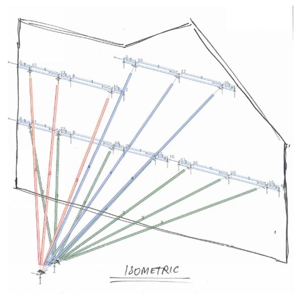 The BIM Model used to develop the installation method (note the centre shaft, winch cable lines and differing inclines)